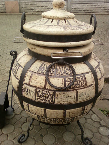 Тандыр-это керамическая печь- уникальная по своим свойствам. Приготовление пищи в тандыре осуществляется за счет мощной теплоотдачи стен, которые нагреваются с помощью изначального нагрева их открытым огнем.