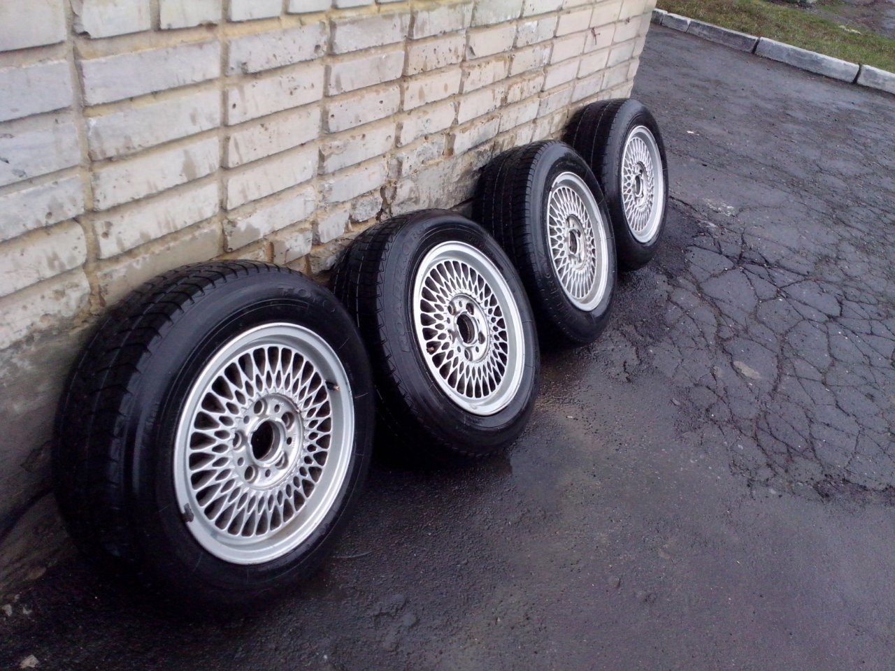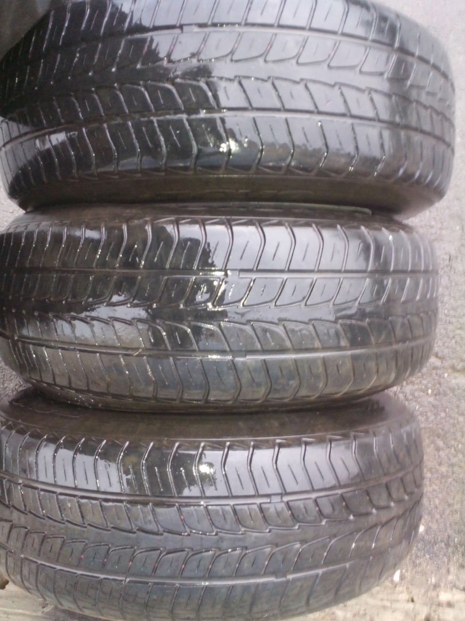 3 колеса с резиной Toyo 195/65/R15 протектор 6 мм минимум, 1 колесо с резиной Michelin в том же размере.