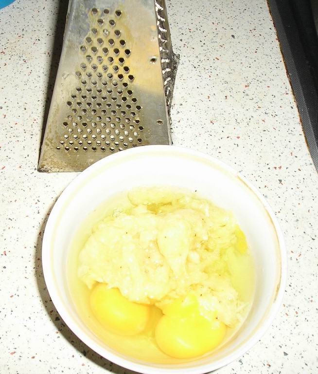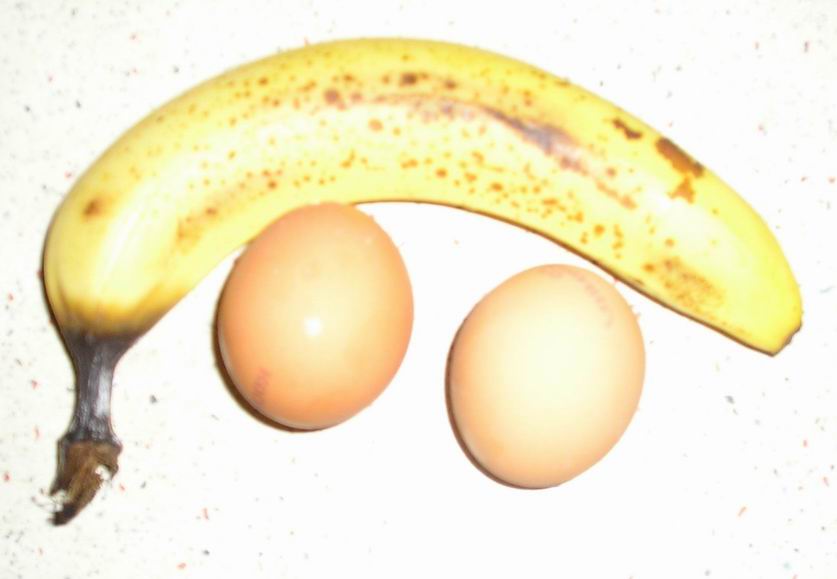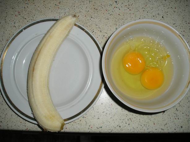 В принципе, по фото все и так понятно, поэтому вкратце: -- Два яйца разбить в тарелочку, туда же на мелкой терке стереть один банан. Все перемешать и жарить