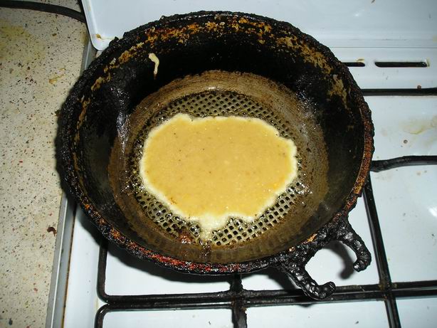 Есть один нюанс. "Тесто" получается очень жидким. Я вообще думаю на его основе делать или обычные блины (с мукой) или омлет. А так, приходится первую сторону жарить до тех пор, пока сверху не исчезнет жидкое тесто, после этого все легко переворачивается