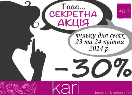 Только два дня, 23 и 24 апреля, Вы можете пополнить свой гардероб стильными обувью и аксессуарами с приятной скидкой -30%.