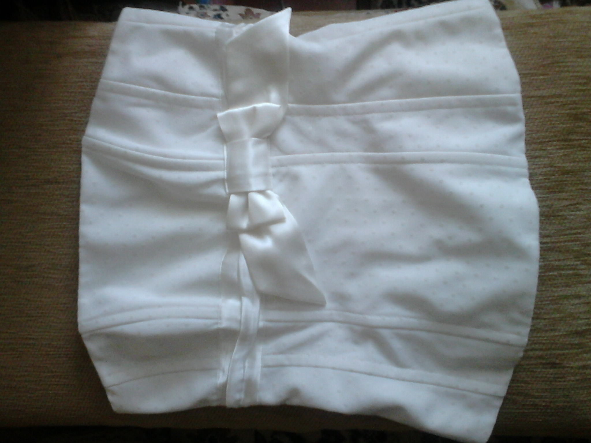 Красивый бело -бежевый топ с бантиком спереди и на змеечке сзади. Новый, размер S -M. На фото смотрится хуже, чем в жизни.Можно носить как с бретельками,так и без. 100 грн, возможен торг