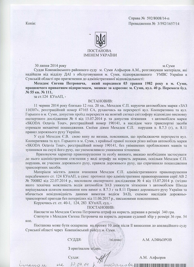 Подал апеляцию,но думаю что решение будет без изменений.а надо всего ничего,просто что бы судья уделил моему делу 30 минут своего драгоценного времени и попытался разобраться что произошло на самом деле.Что-то не получается загрузить скан-копию решения суда,может позже получиться,если кому интереснао