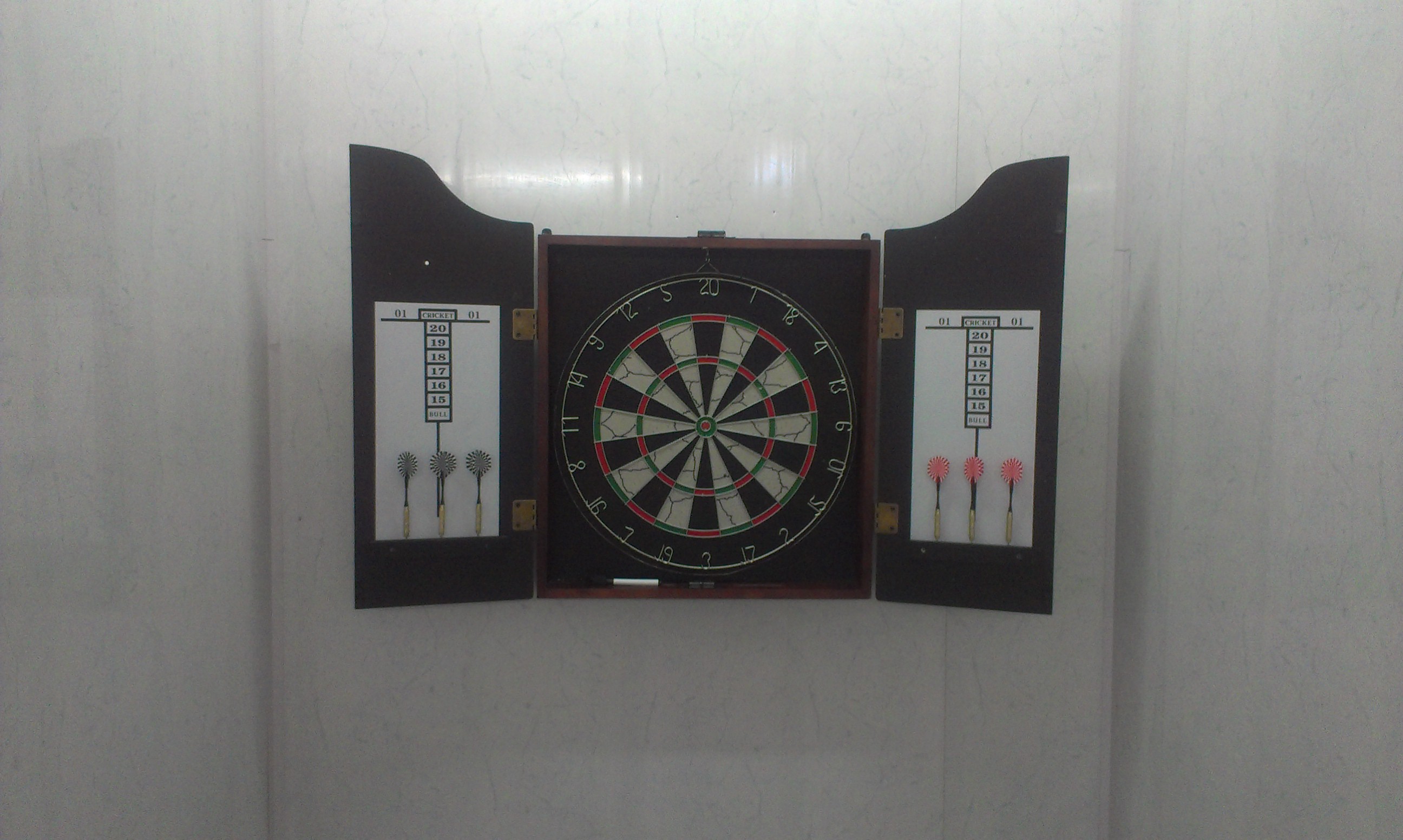 Дартс с кабинетом для мишени BAILLI BL-1815 Размеры:в сложенном виде: 49*64,5 смдверцы: 24,5*64,5 смМатериал дартса: прессованный картон.Диаметр дартса: 45 см.Круговая нумерация. В набор входит: мишень для игры в дартс; 6 дротиков; футляр; доска для записи результатов; маркер со спонжем для стирания. Набор для удобства хранения помещен в деревянный футляр, оснащенный петлями для крепежа на стену, крючком для мишени и двумя досками для записи результатов соперников.Игра в дартс - это прежде всего соревнование в умении точно метать стрелы (дротики). Дартс не требует специальной спортивной формы, а инвентарь для игры простой и долговечный. В эту игру могут играть люди любого поколения, как взрослые, так и дети. Развивает глазомер, координацию движений. Для соревнований не требуется специального помещения. Разместить игру можно и дома, и в офисе, и даже на природе. Основной составной частью игры в дартс является круглая мишень, которая состоит из 20 ровных секторов, трех кольцевых зон вокруг центра. У каждого сектора есть своя цена в очках - от 1 до 20.