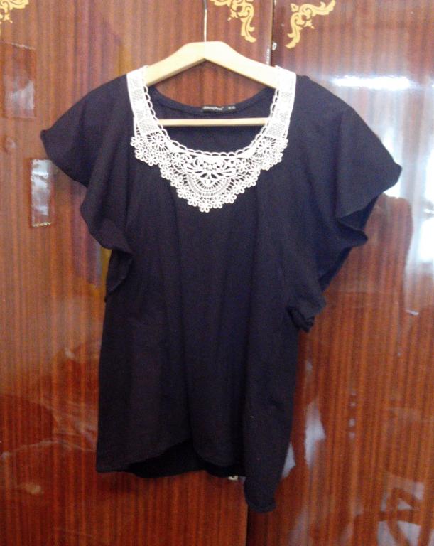 Кофта "летучая мышь" бренда Atmosphere. С оригинальным кружевным воротником. Цвет черный, насыщенный, не выцветавшая.