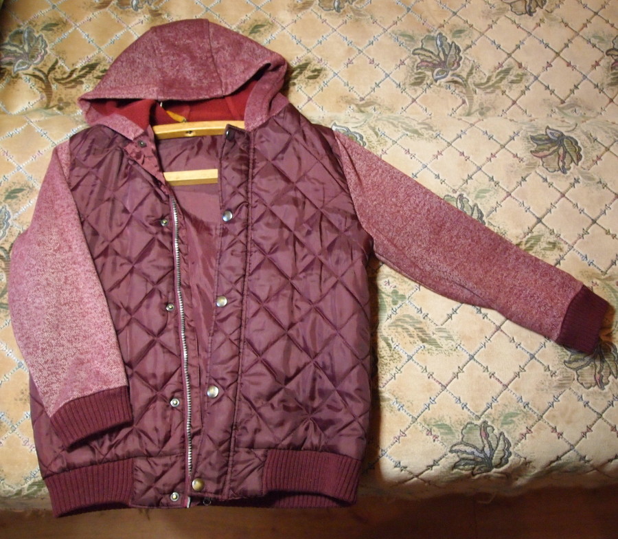 Классная модная куртка на ребенка 11-12 лет. На осень-весну. Приятного бордового цвета, на вид полностью новая, есть небольшой дефект, заштопано под капюшоном, но это совсем не видно. Цвет как на первых двух фотографиях. А так куртка как новая и смотрится великолепно.
