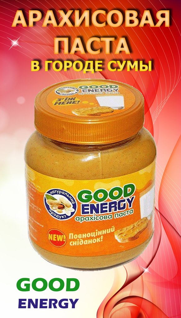 Арахисовая паста "Good-Energy" - это очень полезный, сытный и вкусный продукт питания, полностью натуральный, не имеет в составе компонентов животного или химического происхождения и потому подходит даже самым маленьким членам семьи. Всего один бутерброд с арахисовой пастой обеспечит организм нужным набором витаминов и минералов.