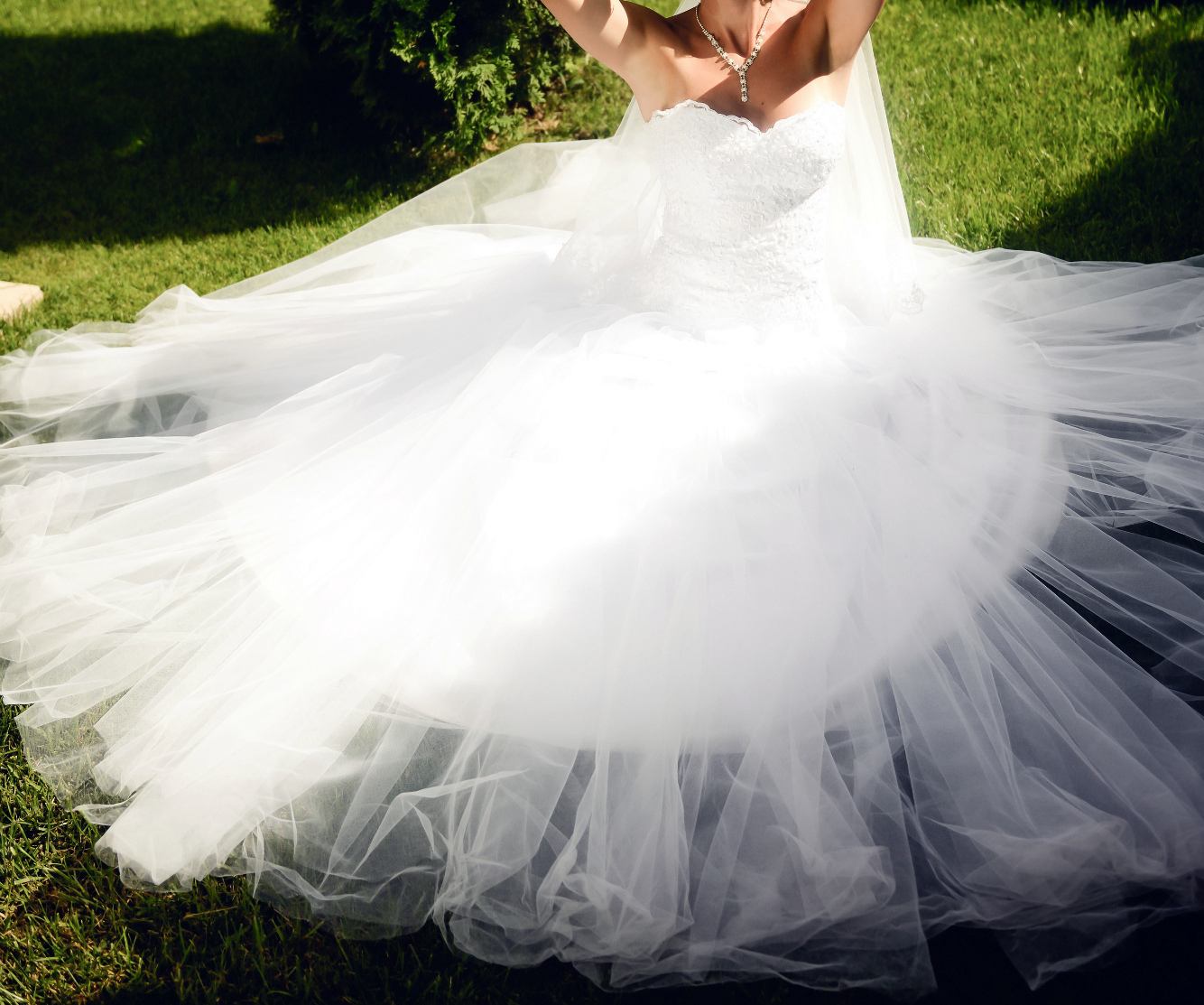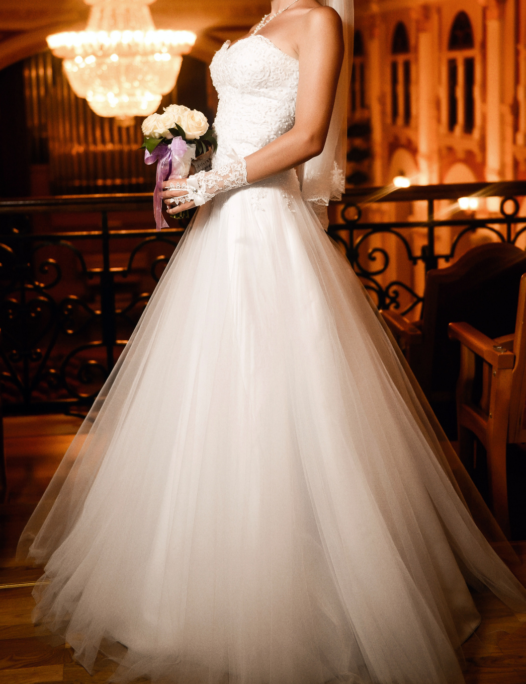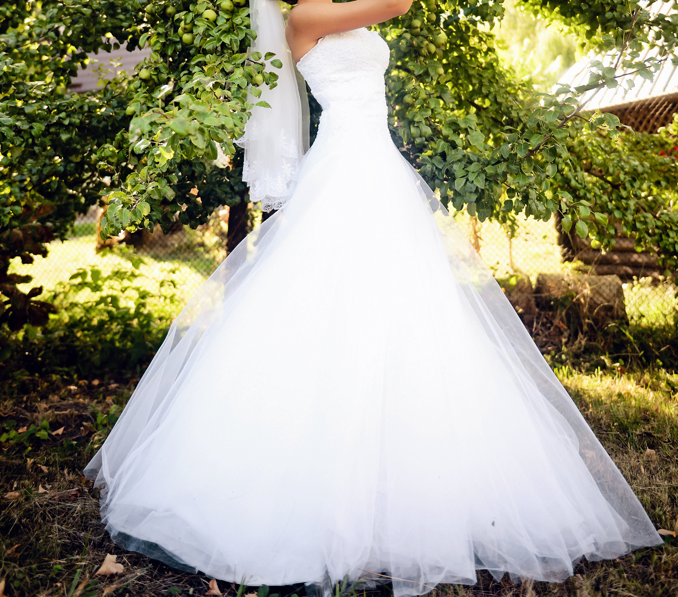 Размер платья 44 (подойдет и на 42, и на 46), на рост ~170 см, одетое только в день свадьбы, платье после химчистки,прилагается кольца (двоечка), корсет с жемчужинками, само платье ненамного заужено в бедрах, покупалось в городе Харьков. Предварительная примерка.