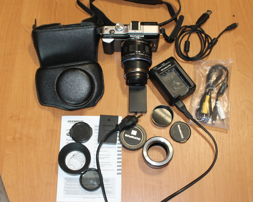 В комплекте: инструкция, запасной аккумулятор, зарядное, ультрафиолетовый фильтр, бленда, чехол, запасная крышка на объектив, переходник на м42 для советских объективов. Отстрел 17 000.