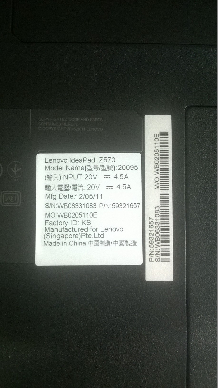 Комплект поставки: Ноутбук Lenovo IdeaPad Z570, батарея, адаптер питания, документация