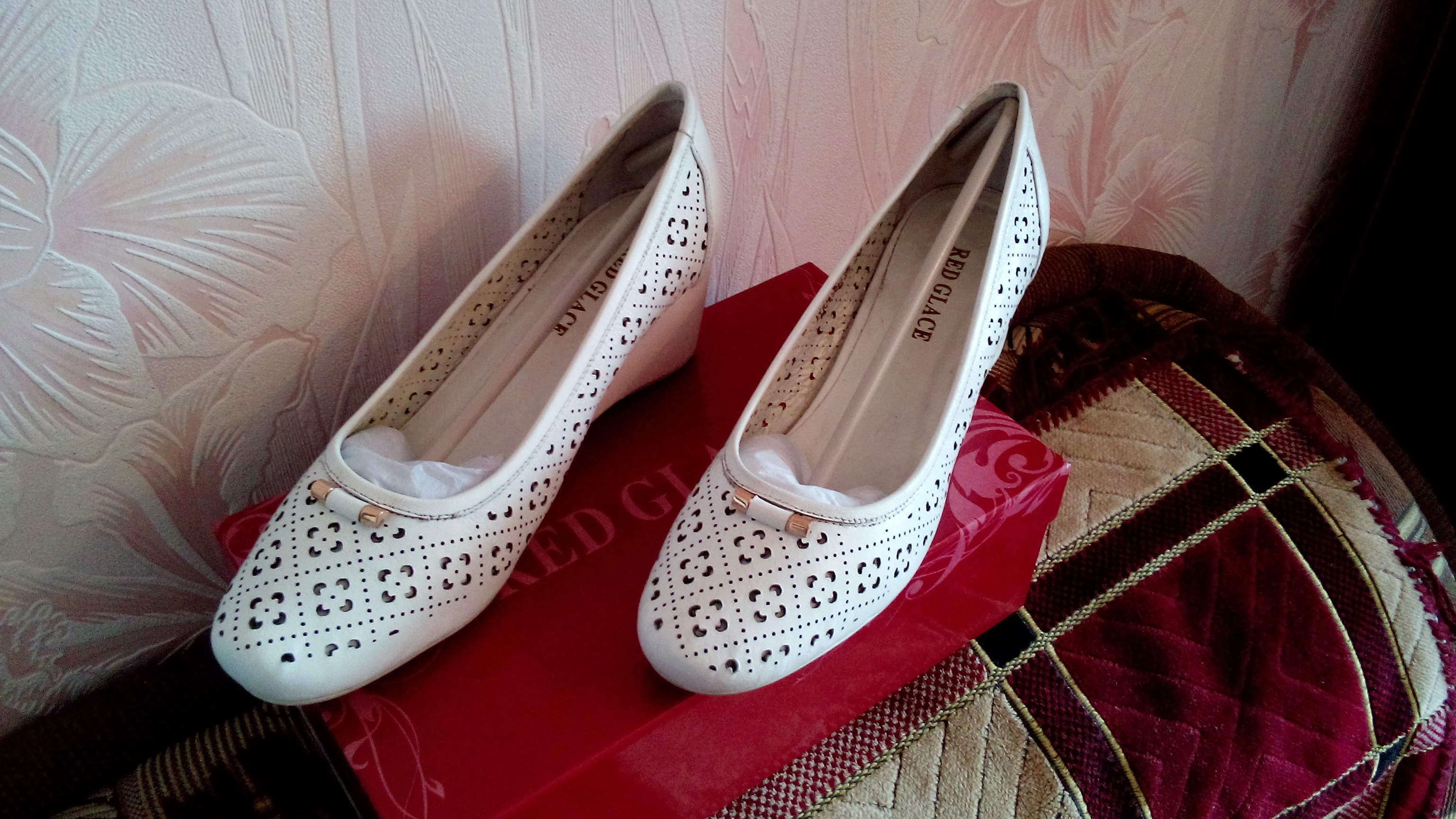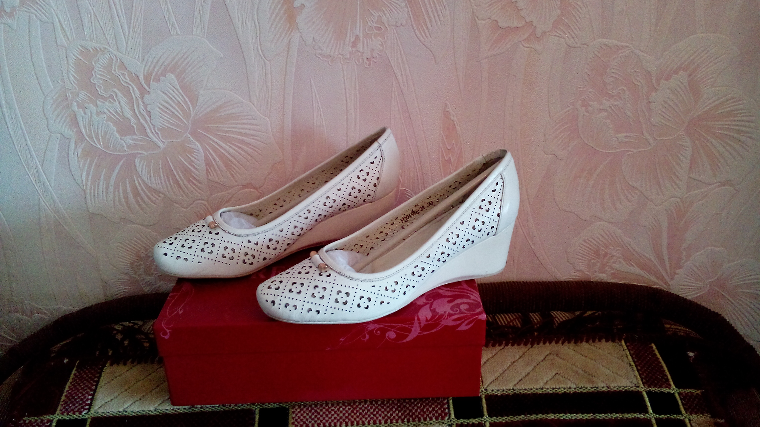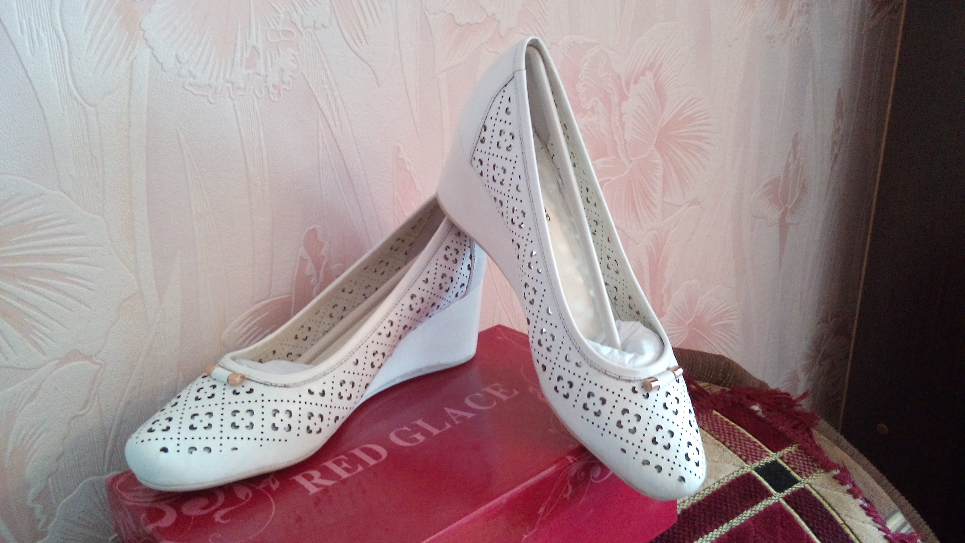 Продам женские кожаные туфли 38 размера на танкетке в отличном состоянии. Производитель "Red glace". Одевались один раз на свадьбу. Фото прилагаются.