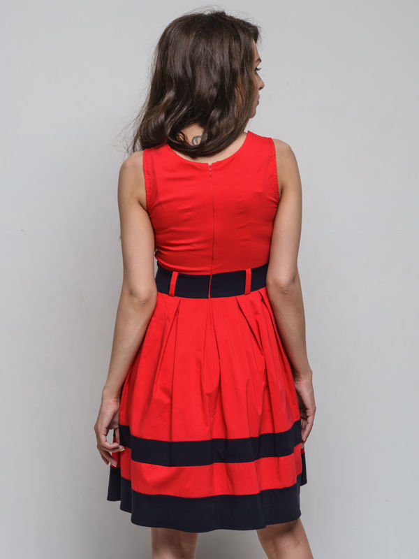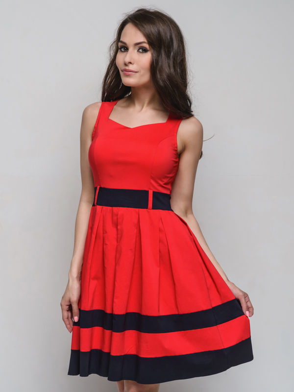 Купила платье по интернету, не подошло по размеру. Платье стрейч-коттоновое, растяжимость ткани отличная, прекрасное сочетание красного цвета с темно-синим. Сарафан новый, с этикеткой, покупала за 197 грн. В живую выглядит точно так же как на фото.