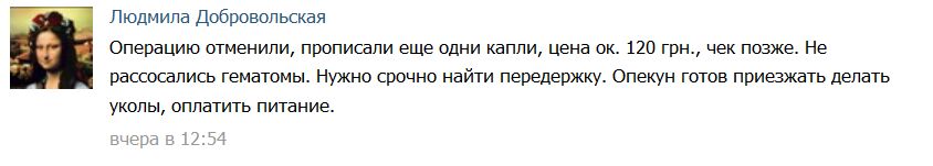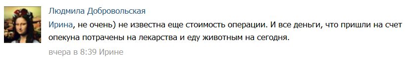 Но это не мешает админам группы, вопреки словам врачей, утверждать, что операция будет позже и собирать на нее деньги.