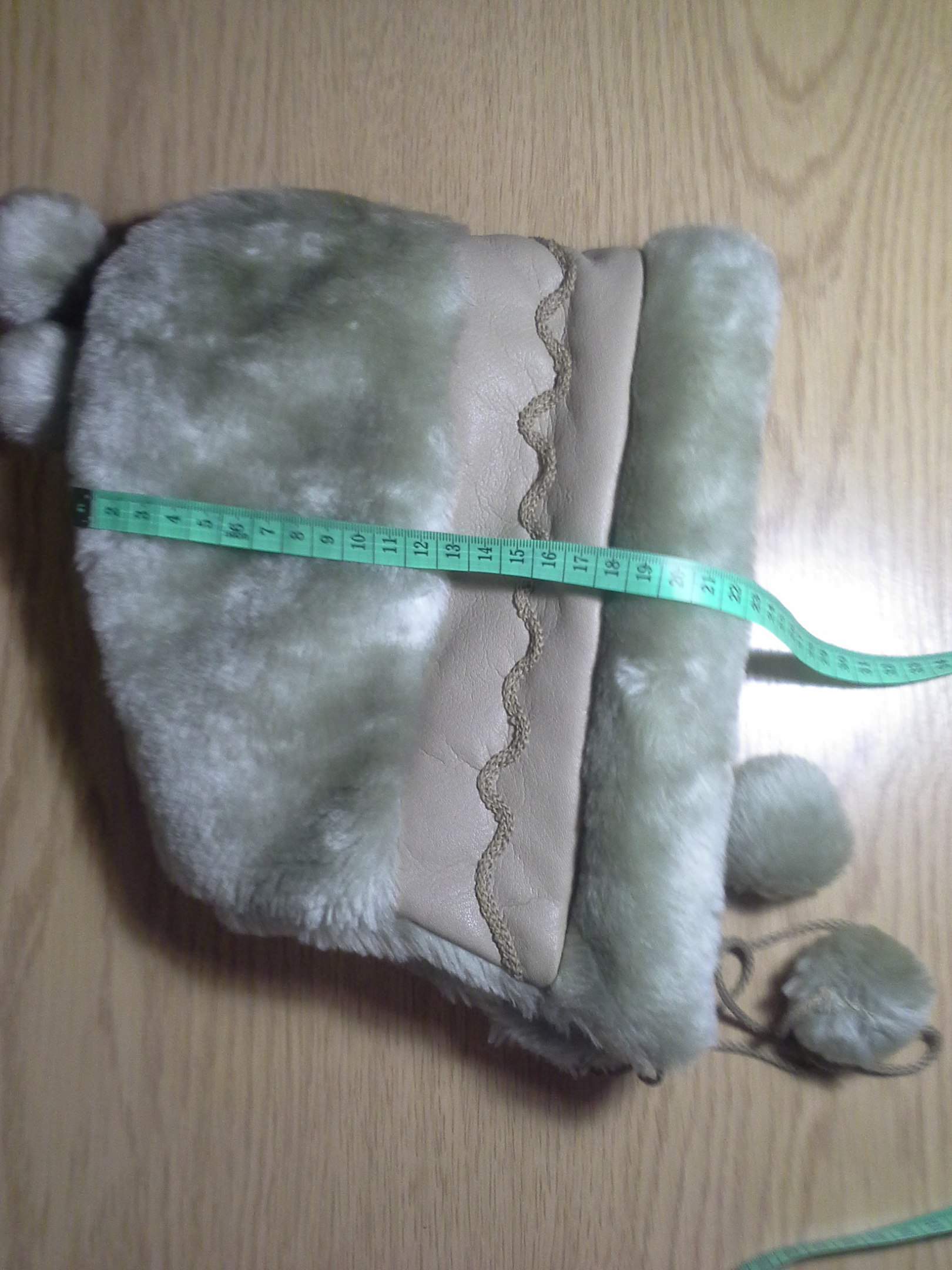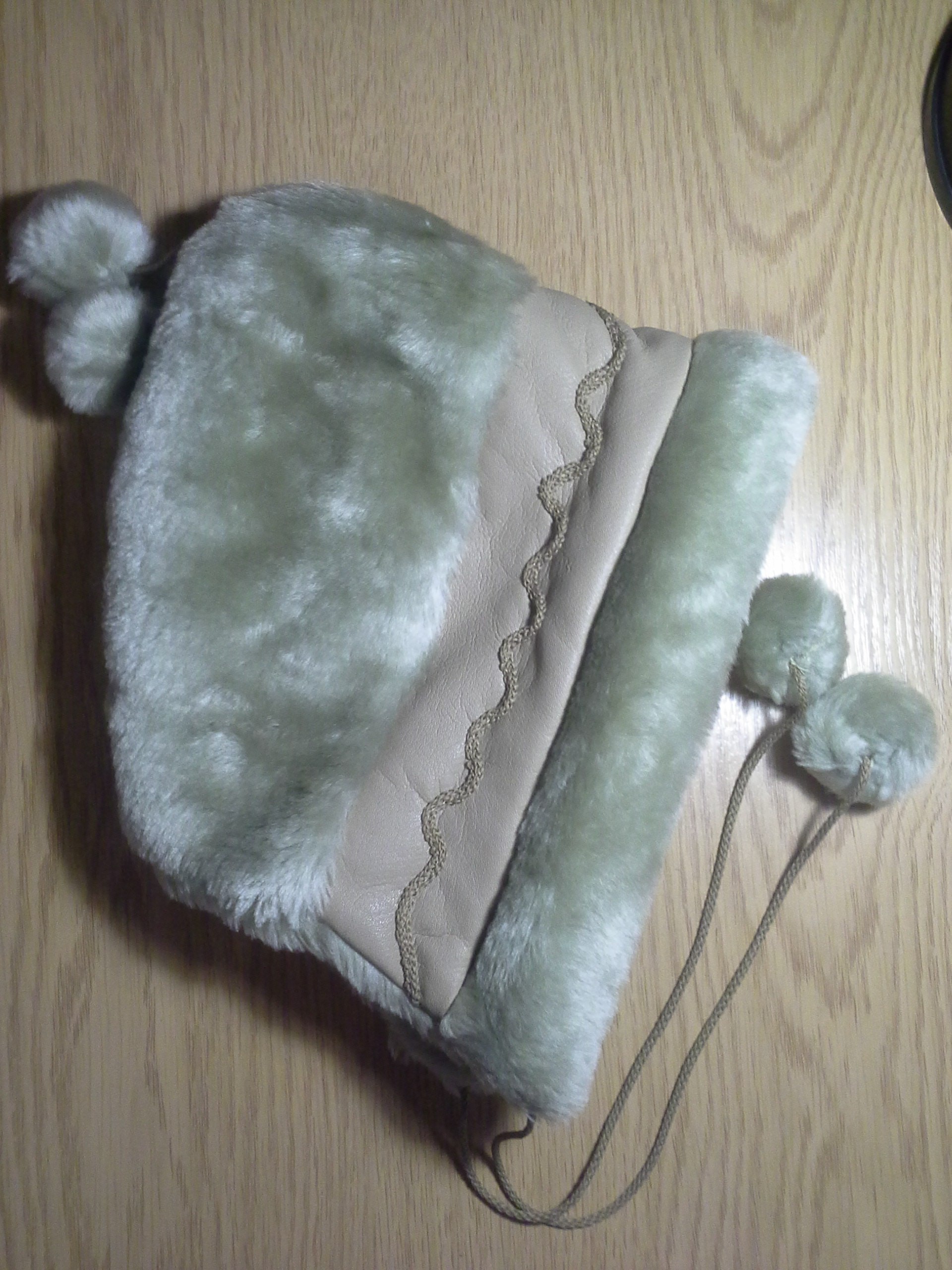 - цвет шапочки кофе с молоком, с орнаментом из бежевой искусственной кожи с тесьмой вокруг головы;