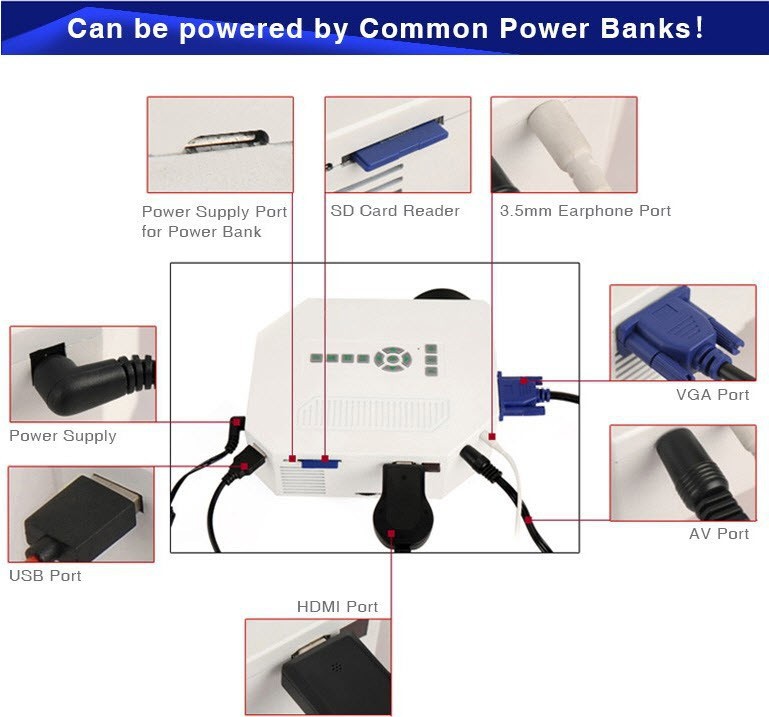 Проектор оснащен двумя встроенными динамиками, благодаря своим небольшим размерам и малому весу, вы можете взять его с собой, чтобы ваши друзья, могли разделить с вами удовольствие от просмотра фильмов. Так же можно использовать на лекциях, конференциях и т.д.