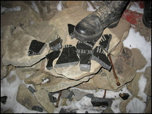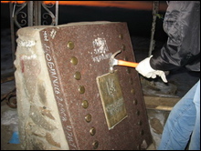 "Уничтожена гранитная доска украинской сектантской церкви. Разбит гранитный памятный знак, посвященный т.н. "конституции Украины", вместо символа украинских коллаборантов жовто-блактного прапора над горой водружен стяг Евразийского Союза Молодежи", - сообщает ЕСМ.