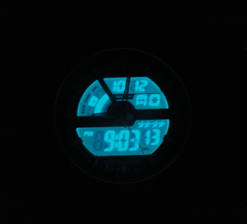 Функции: Календарь, будильник, секундомер, хронограф, 12/24 часовой формат времени, ежечасный звуковой сигнал, светодиодный дисплей с LED подсветкой экрана и цифр.