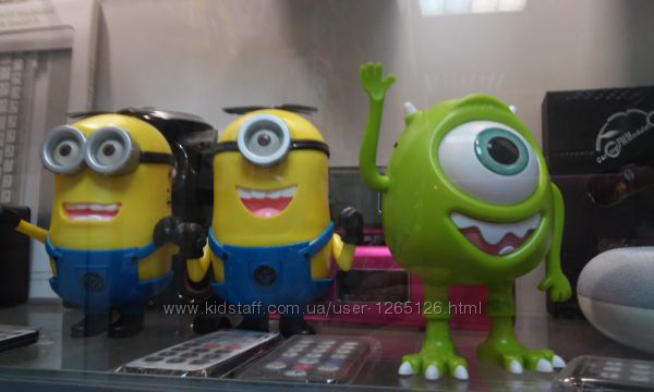 Любимый персонаж миньон оживает в качестве колонки, портативного МР-3 проигрывателя и FM приёмника.