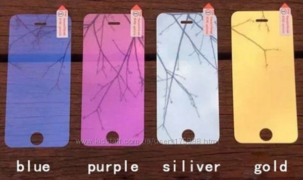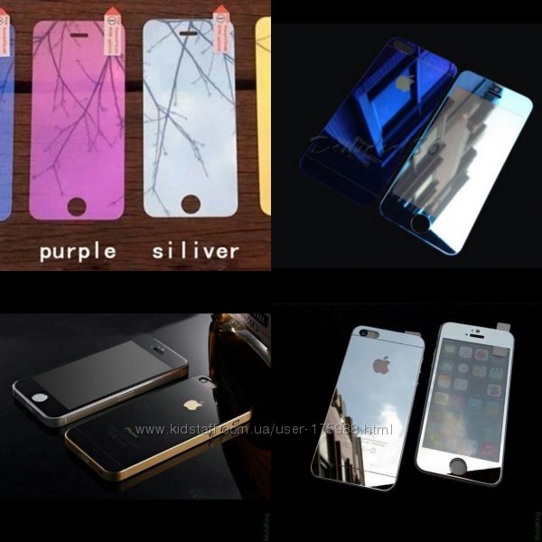 Защитные противоударные цветные зеркальные каленые стекла на Iphone