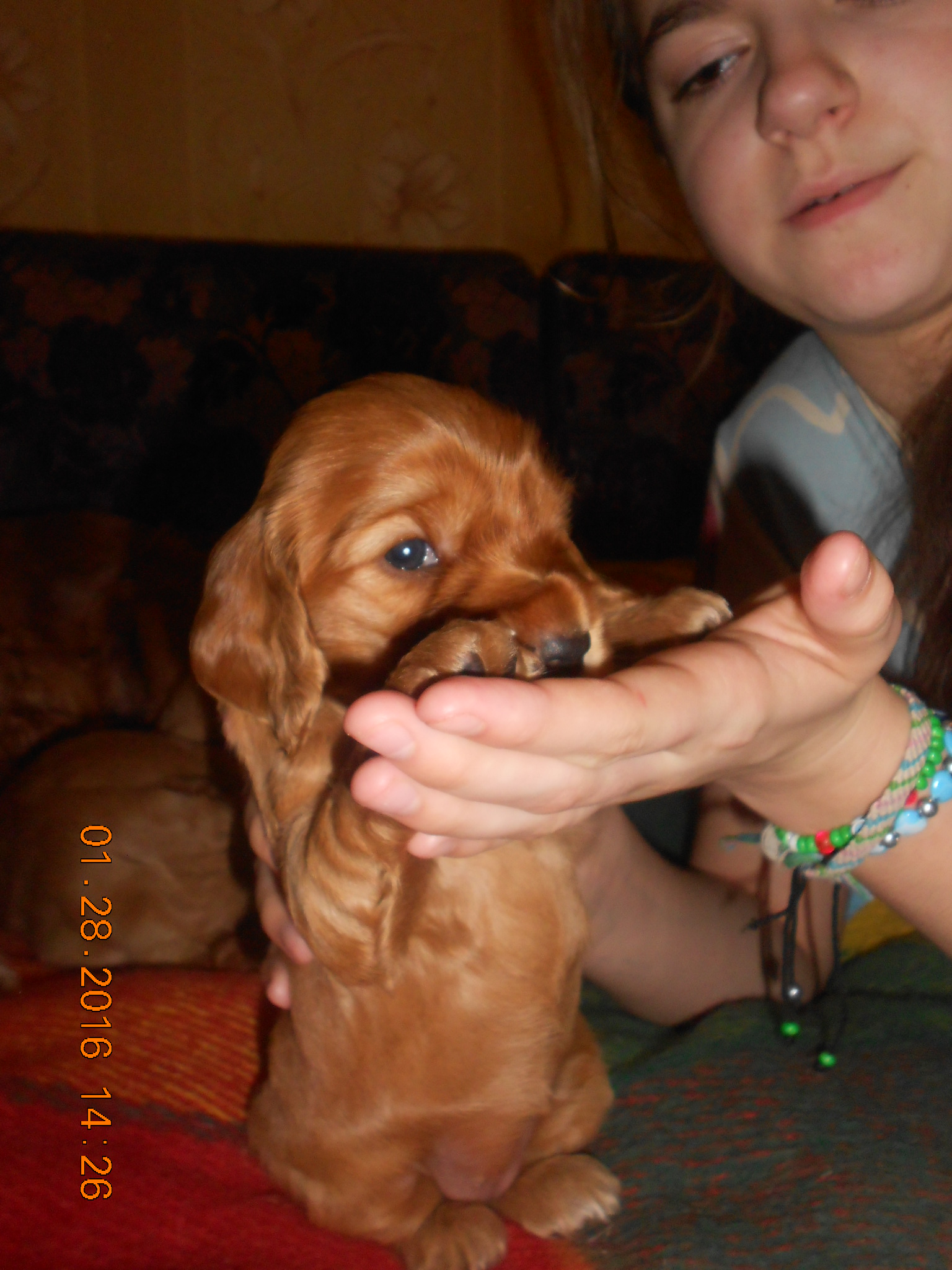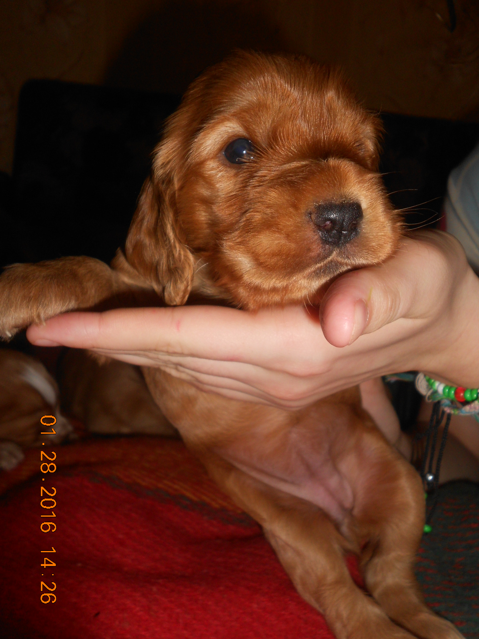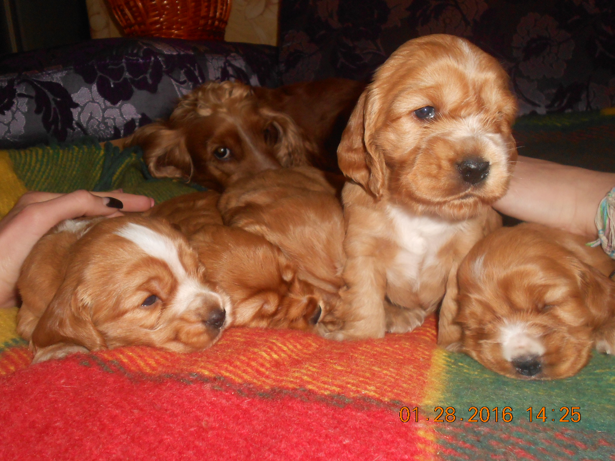 Предлагаем прекрасных щенков английского кокер-спаниеля золотистого и красного окрасов с белым подпалом .Пять долгожданных здоровеньких девченок родились 3.01.2016 года , воспитуются с любовью, хвосты купированы, сделана антигельментная профилактика. Детки будут готовы к переезду в середине февраля. Щенки приучаются ходить в туалет на газетку. Родители щенков на фото. Папа имеет родословную, мама- просто домашняя любимица и красавица с сильно развитым материнским инстинктом. Кокер - это миллион эмоций в секунду и нескончаемая любовь к человеку, невероятно сообразительная, дружелюбная к членам семьи хозяина собака. Активная, энергичная, гордая, знающая себе цену, всегда готовая неутомимо работать. Лучшего компаньона для прогулк не существует! Эта породы собак очень хорошо подходит для содержания с детьми, а так же в большинстве случаев дружелюбна по отношению к незнакомым людям. Английские кокер спаниели хорошо уживаются с домашними животными, этому прекрасно подходят для содержания с другими питомцами в доме. Сука в отличие от кобеля, быстрее привыкает к хозяину, более послушна и уравновешенна, легче контролируется. Желающих подарить себе источник позитива, любви и преданности звонить 099251651три