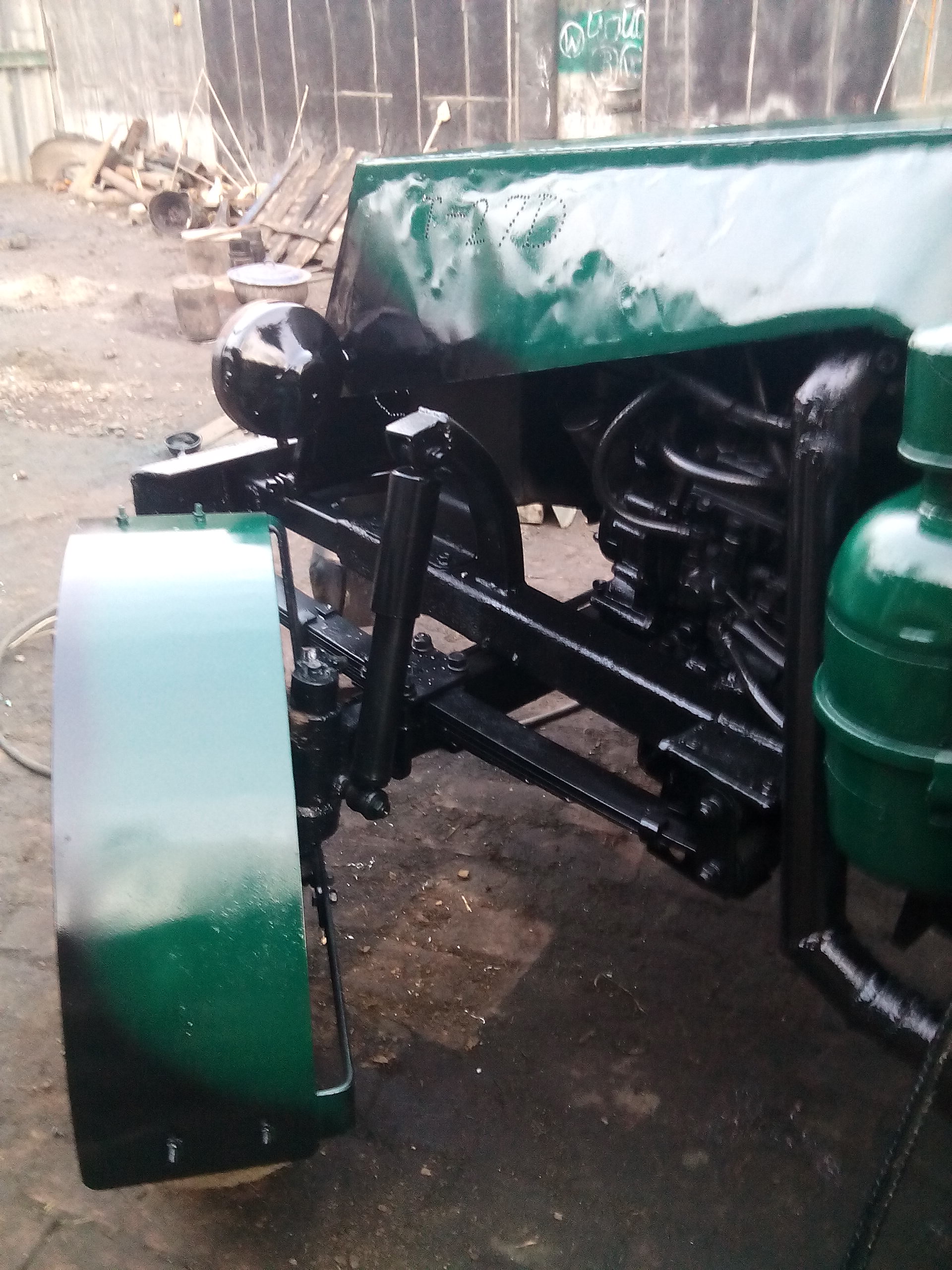 Трактор полностью на рисорах и амортизаторах а также сзади стойки, без проблем идет по пересеченной местности разбитые дороги не переключая передач по селу около 60 км/ч тока качает, отлично показал себя в пахоте с двух корпусовим плугом с захватом по 32 см. каждый, при том на лисой резине на то время, также отлично справляеться с остальним навесним оборудованиям которое на него вешали.