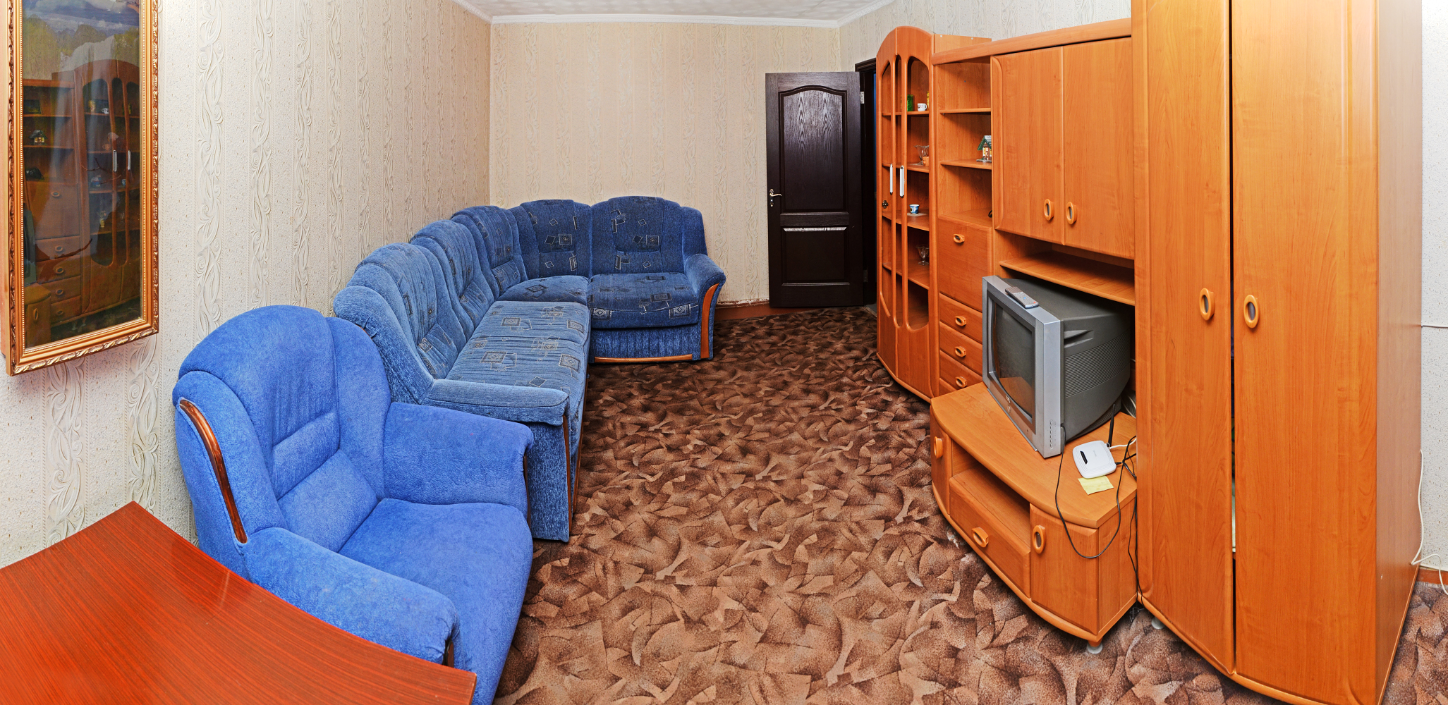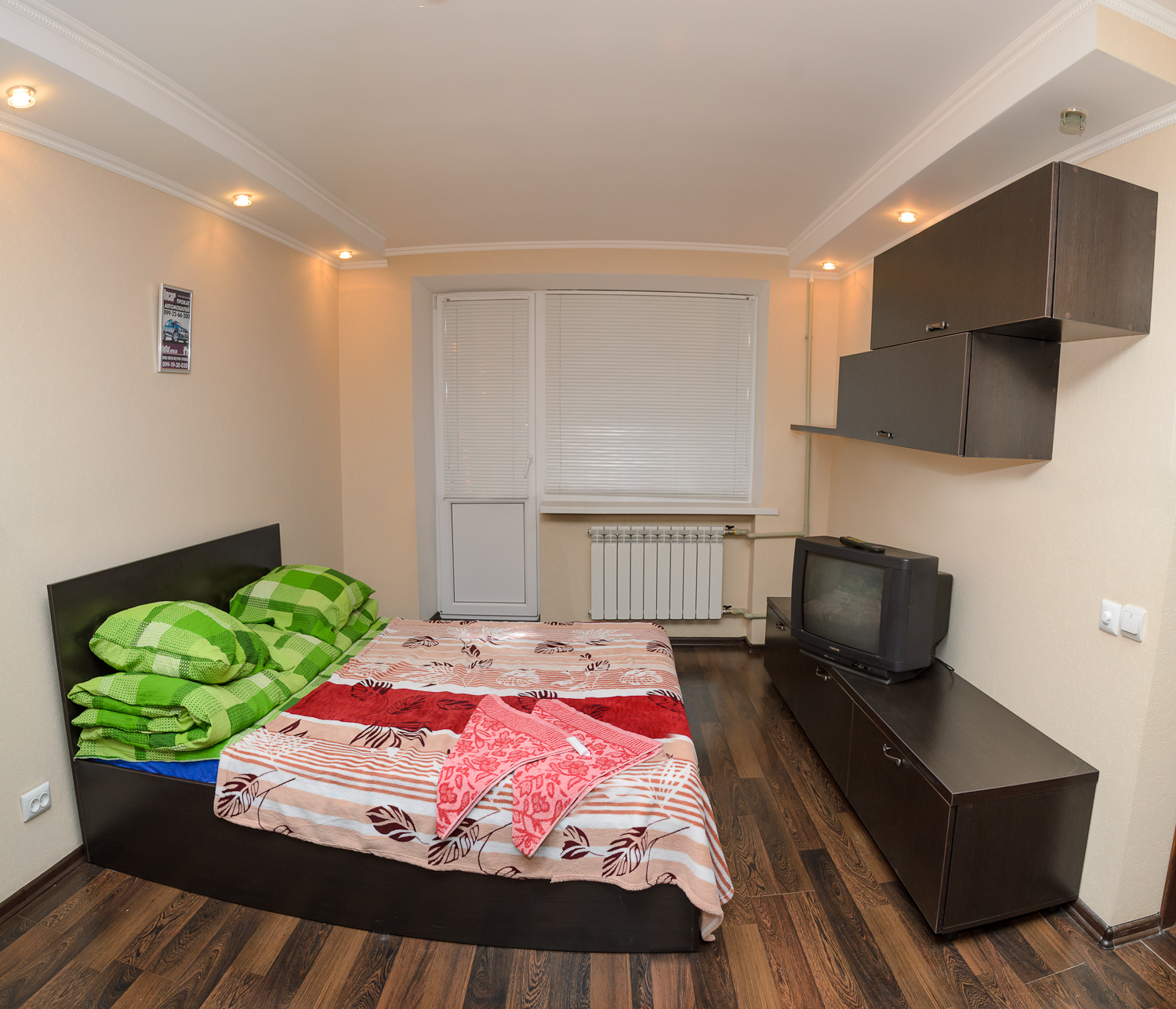 4 спальных мест (новая двухспальная кровать и двухспальный диван)