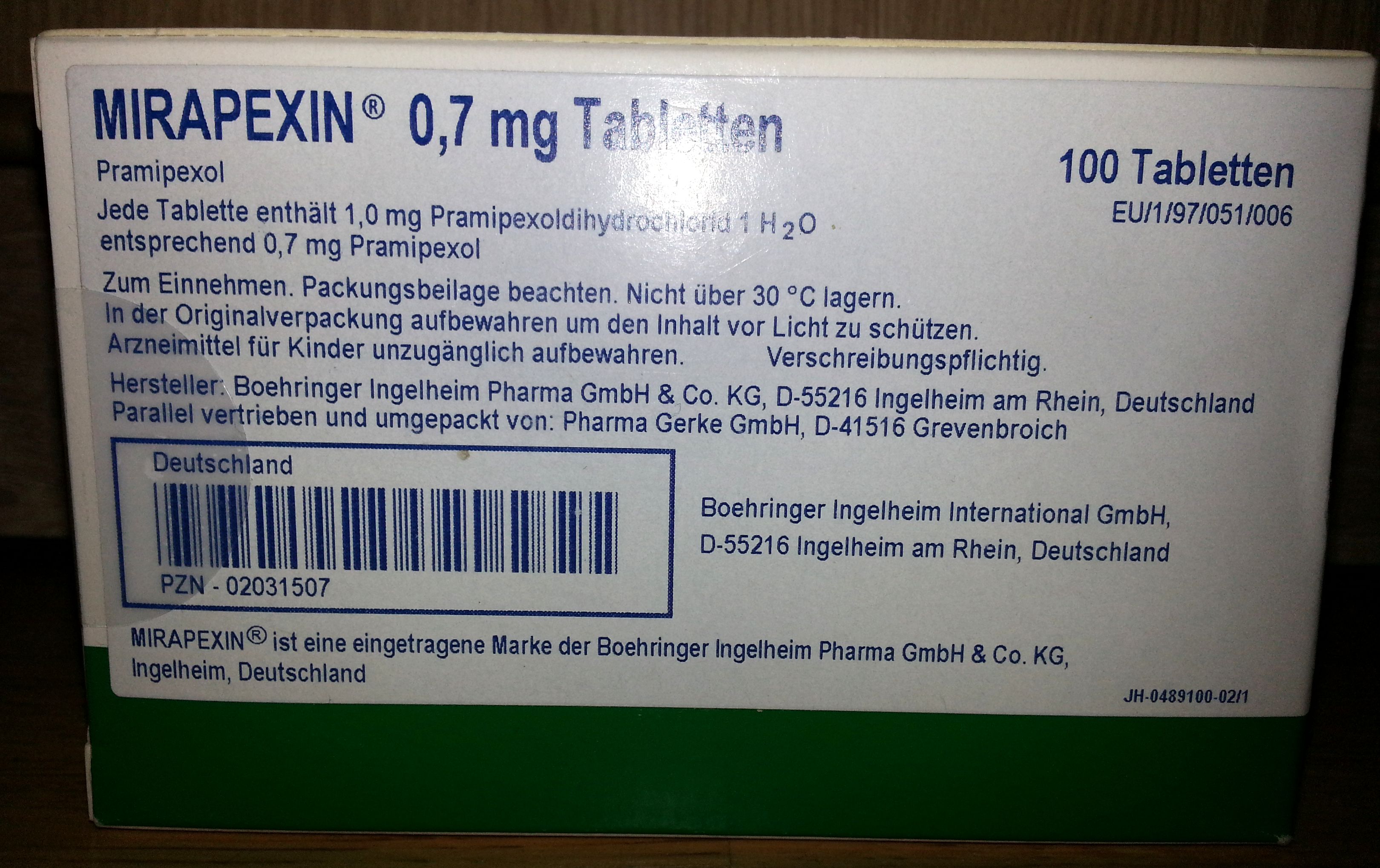 Mirapexin (мирапекс) 0,7 мг