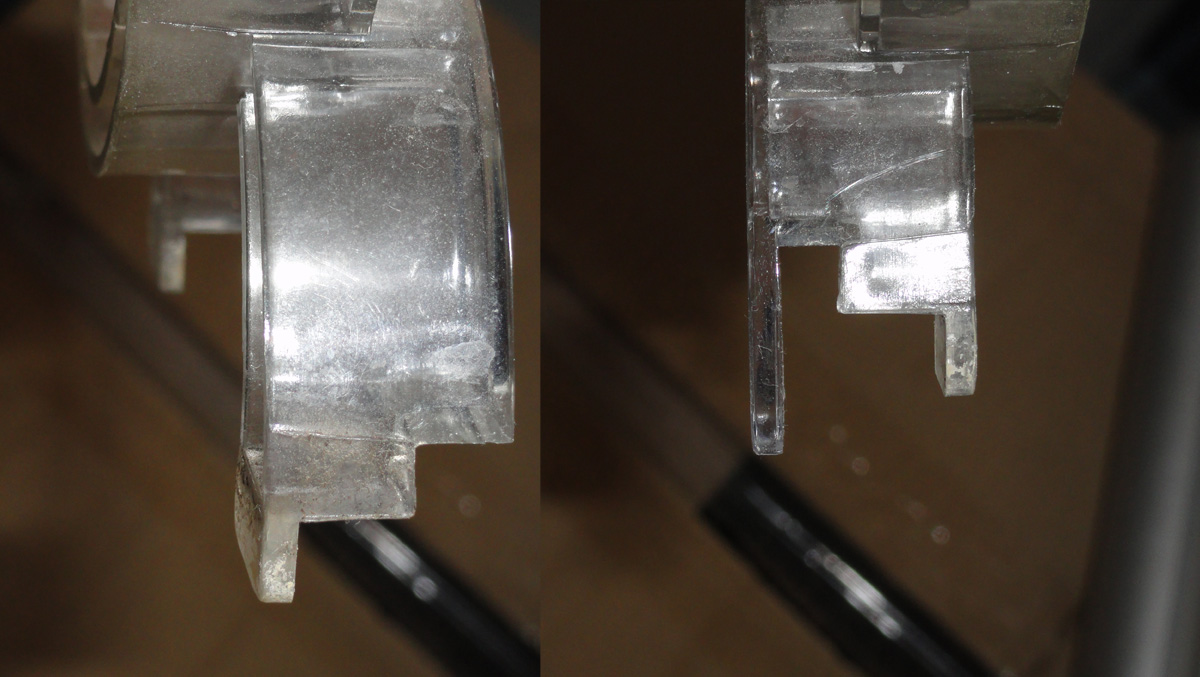 На одной ножке по неаккуратности отломан один фиксатор, трещина на пластике возле кнопки (видно на фото), на функционал не влияет, рабочий, использовался года 4. - 300грн