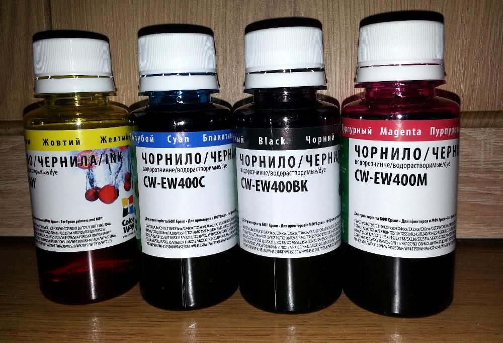 Преимущества чернил ColorWay: улучшенное закрепление и химическая стойкость; цветопередача наиболее близкая к оригинальным чернилам; полная совместимость с оригинальными чернилами; оптимальное соотношение цена/качество.