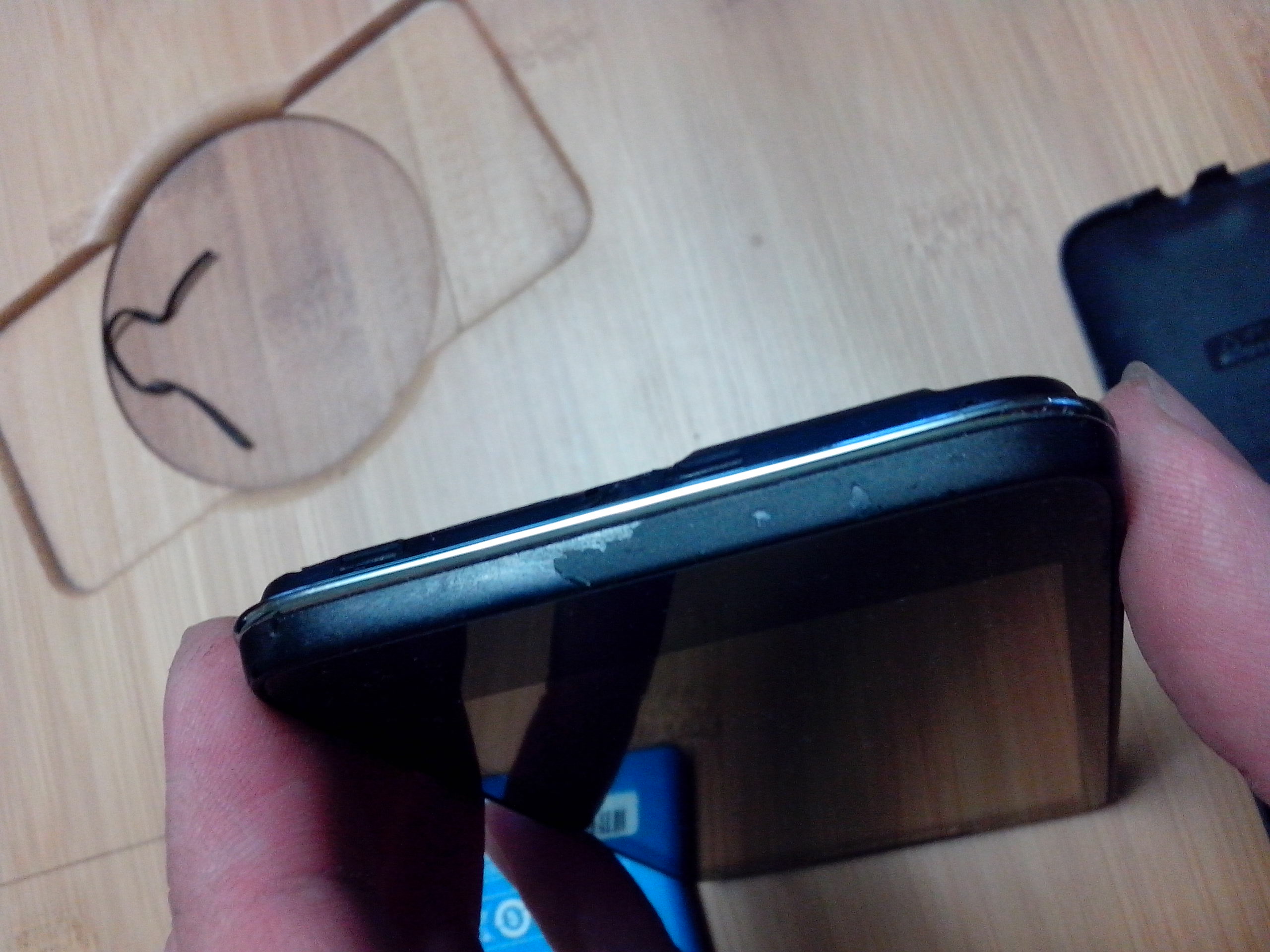 Есть потертости на нижней грани на телефоне и крышке, а также на крышке небольшой скол на боку (см. фото)