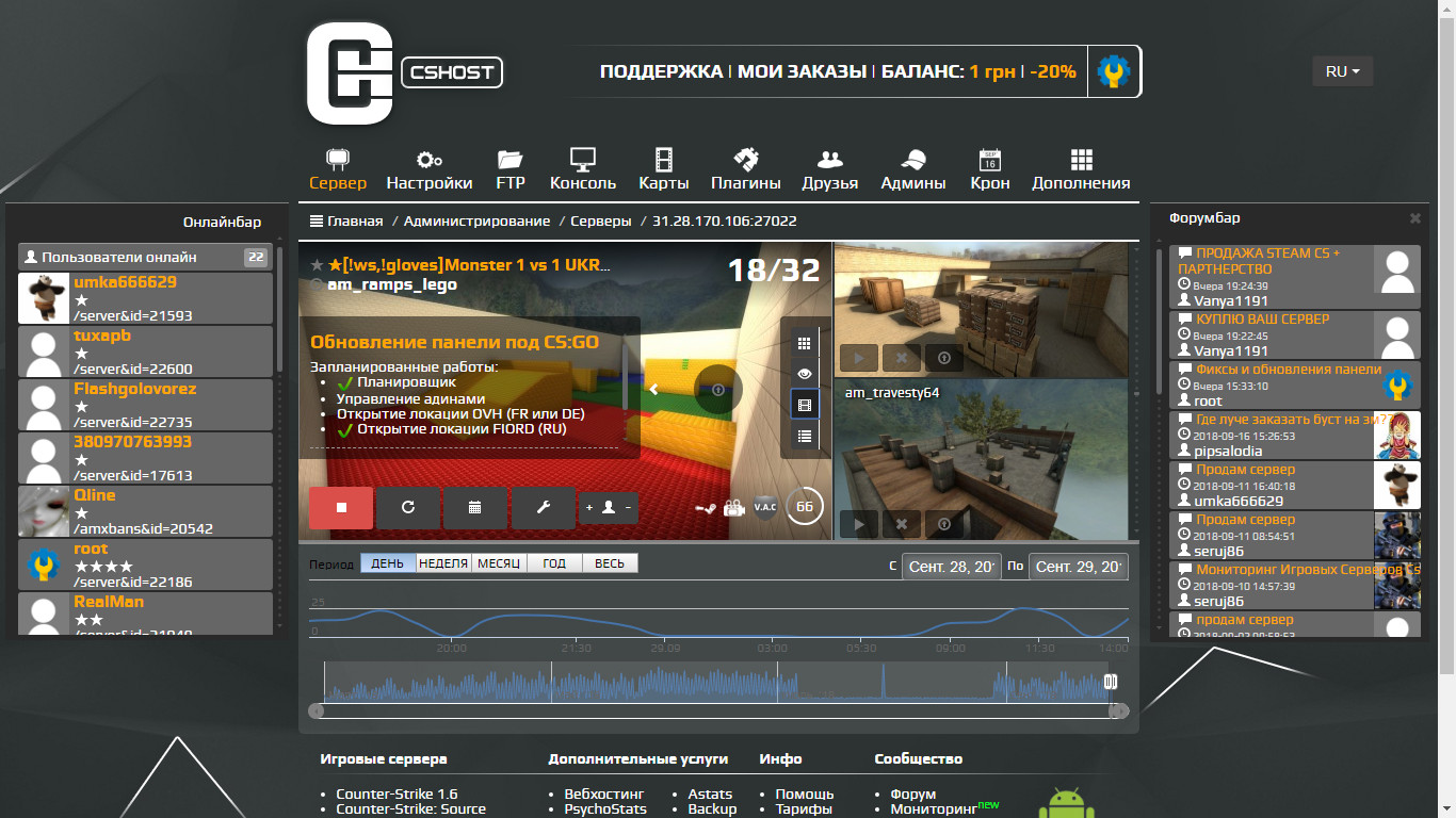 Так же можно подключить свой vds\vps\dedicated и управлять с помощью игровой панели CSHOST