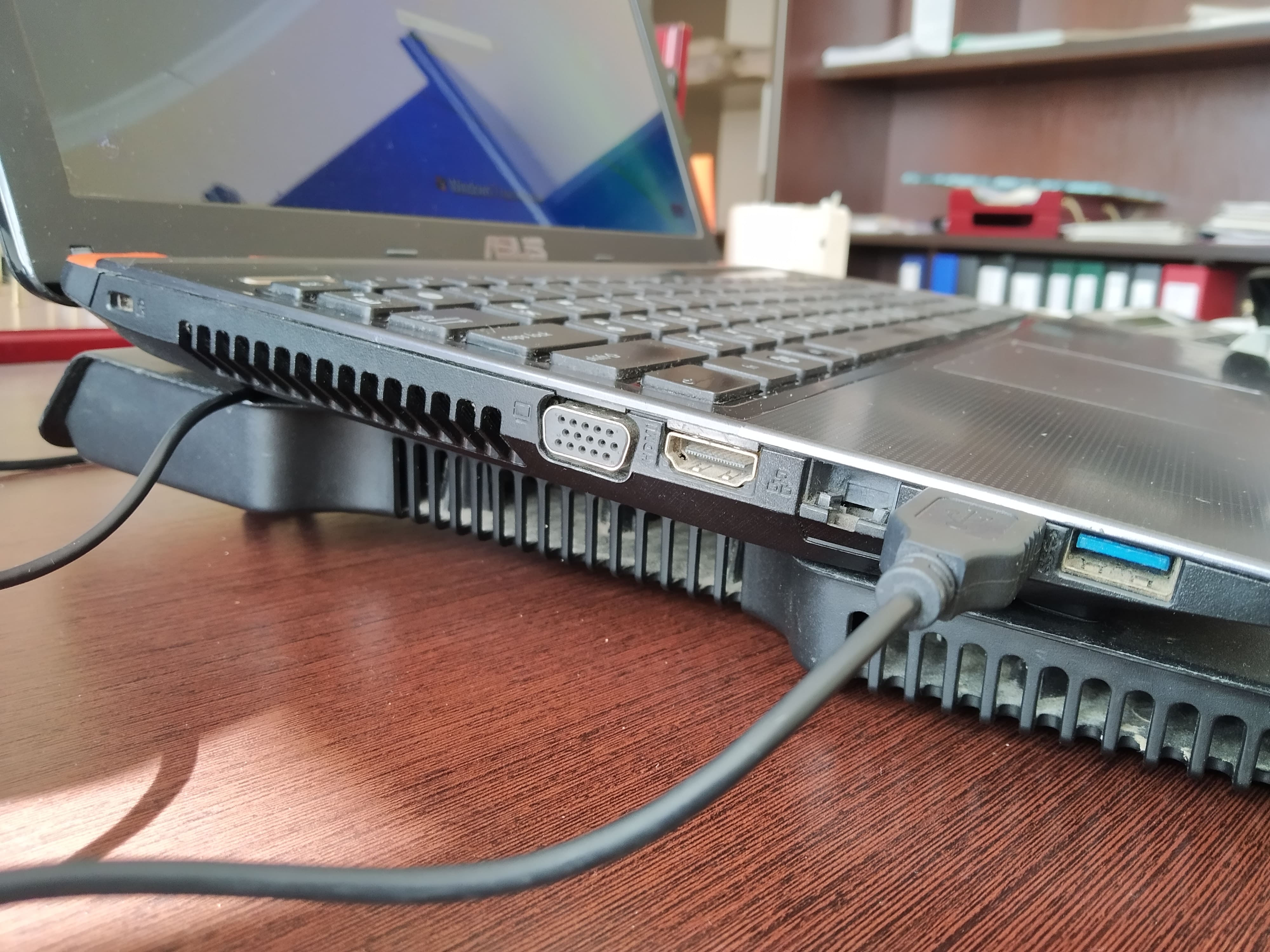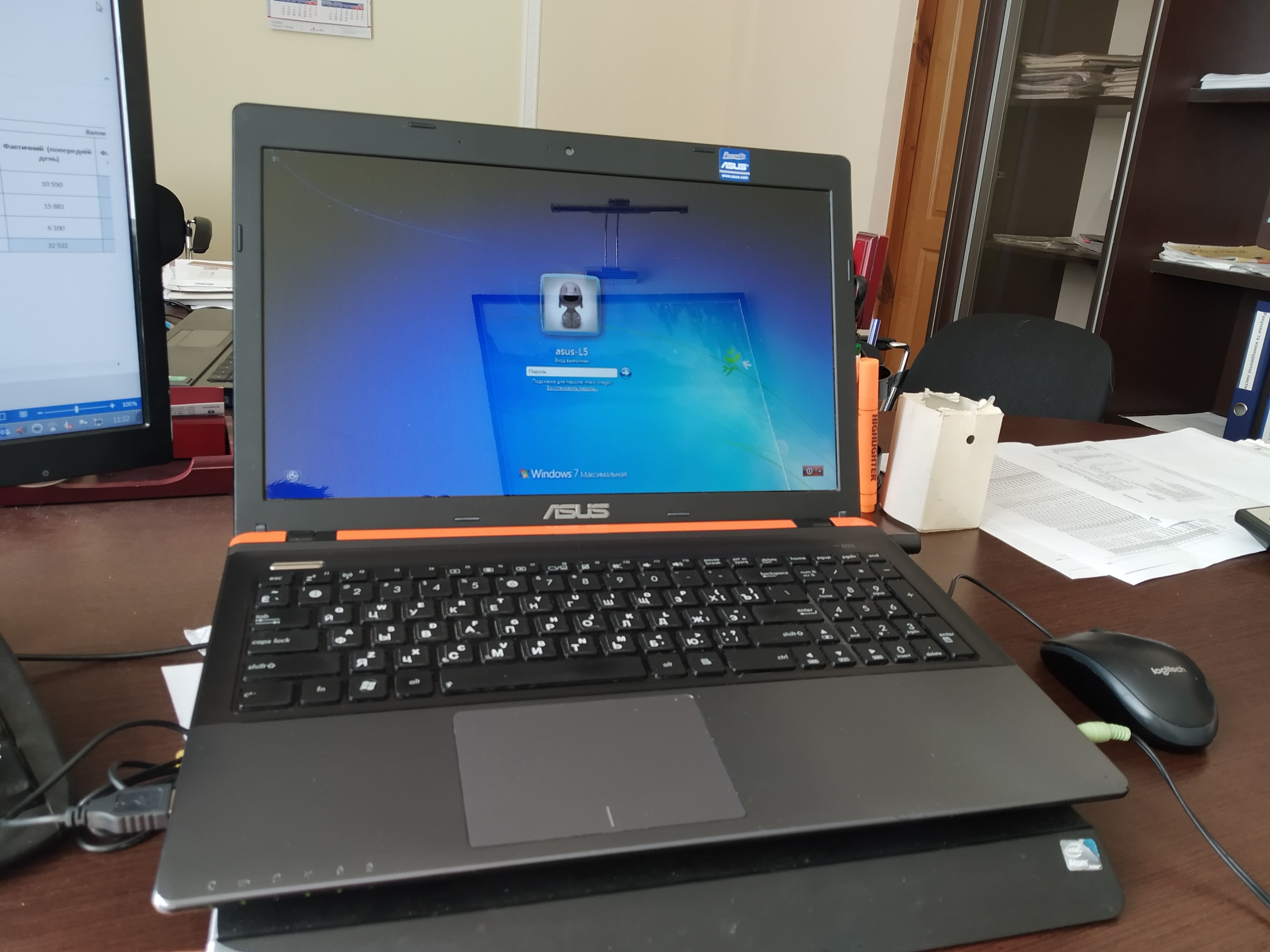 В хорошем состоянии, ЦП 4ядра AMD A8-4500M разогнанный с 1.9 до 2.3Мгц, ДДР3 ОЗУ8Gb, винт с системой на 120ГБ SSD, +винт родной на 500Гб под файлы, подключен вместо двд привода, GPU AMD HD7640G. Батарея держит при активном серфинге через вай-вай, полтора часа до полного разряда. Потертостей на ноуте нет. В комплекте зарядка, сумка Асус и мышка Логитеч В100.