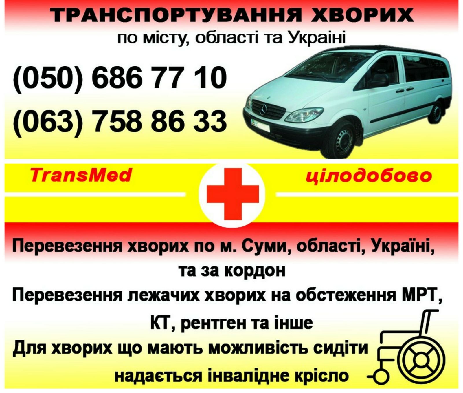 Перевозка больных по г.Сумы, области, Украине и за границу.