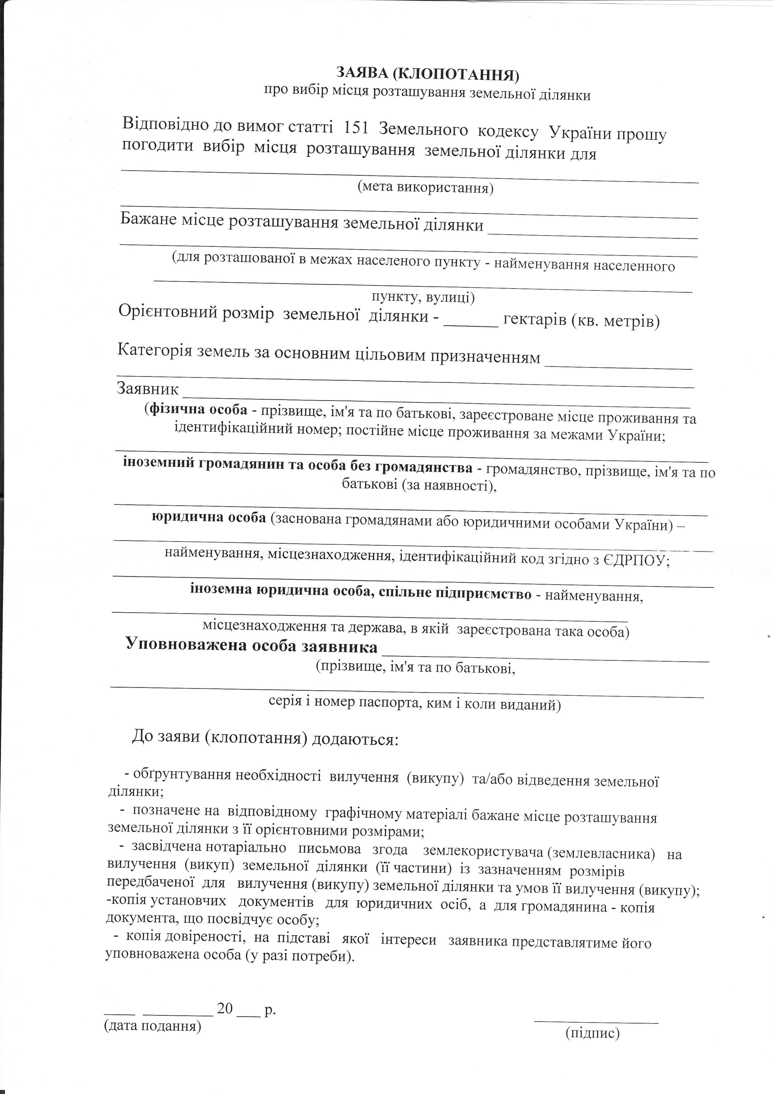 Сказали заяву писать лучше по этой форме. А если в произвольной, то тоже пройдёт. Чёткого бланка никто не утверждал.