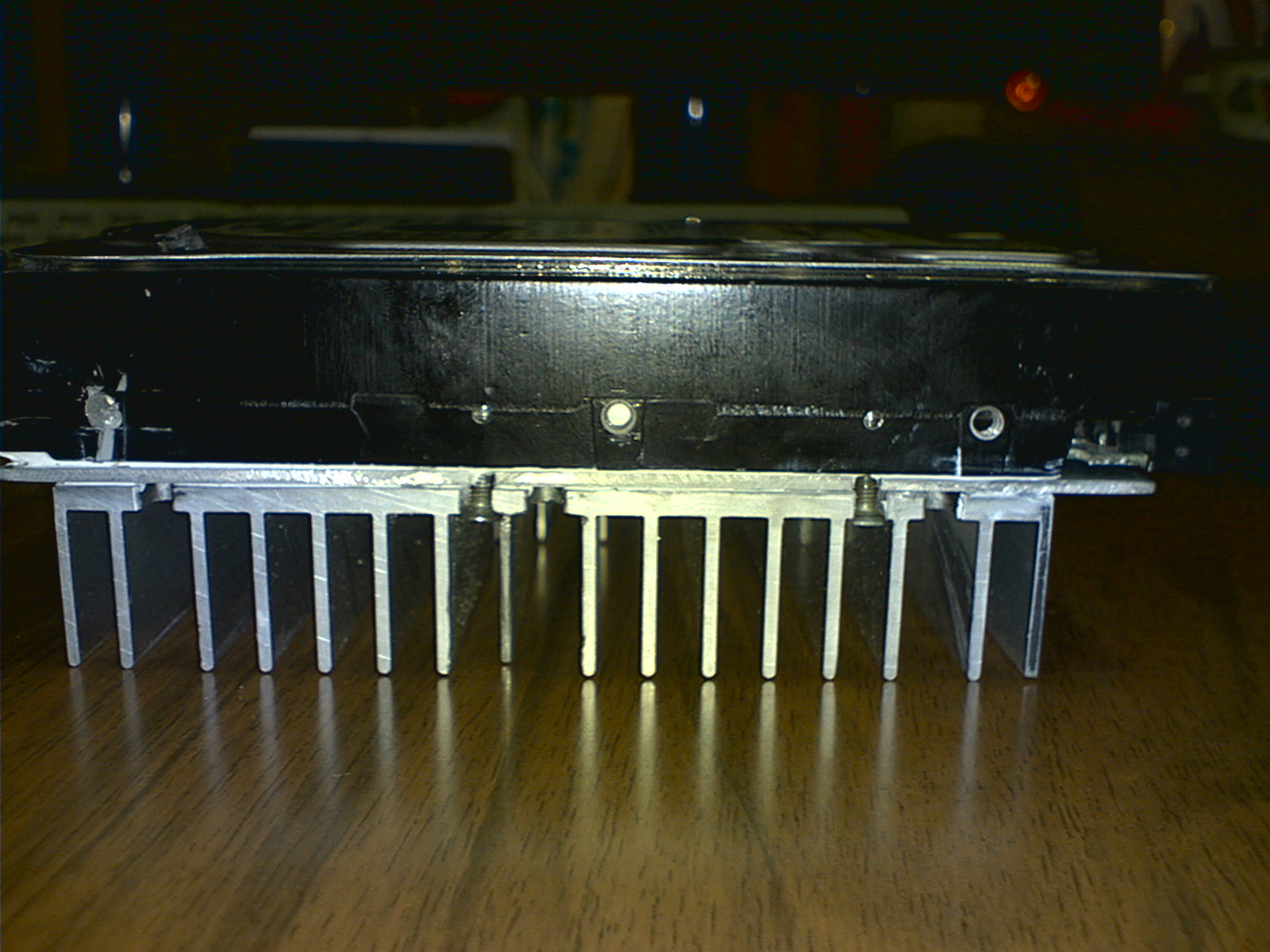 И так,есть винчестер WDC WD4000AAKS всё меня вроди бы устраивало но температура его ни как мне не давала покоя-с кулером(на морде) 33 без него 46 °C .После 2 дней мучений я всё таки воплотил идею в реальность,теперь температура винчестера 25-26°C с кулером и 35-36°C без него-при температуре в комнате 23°C .правда при полировке отломалось ребро,переделывать не захол за отсутствием деталей.