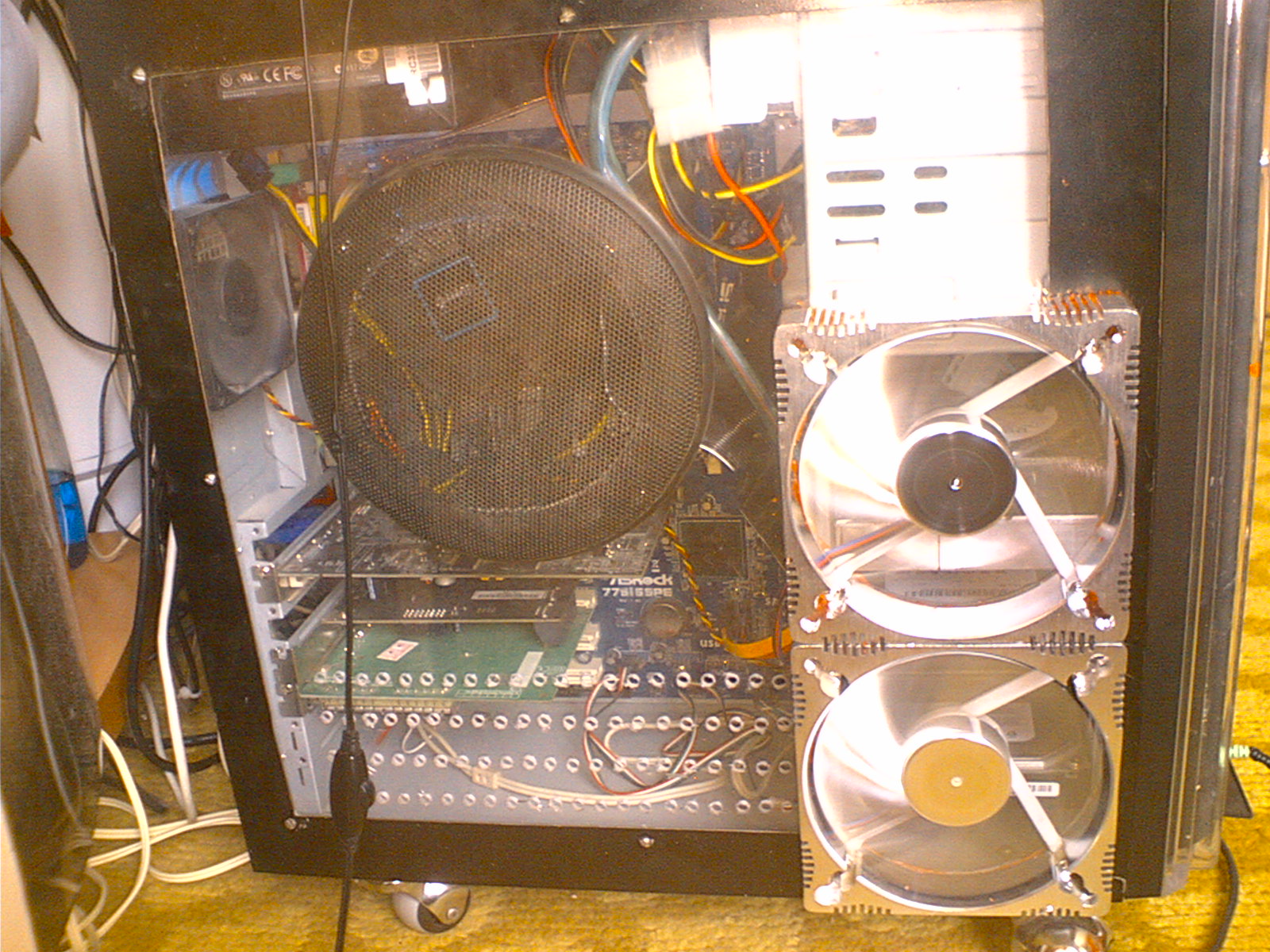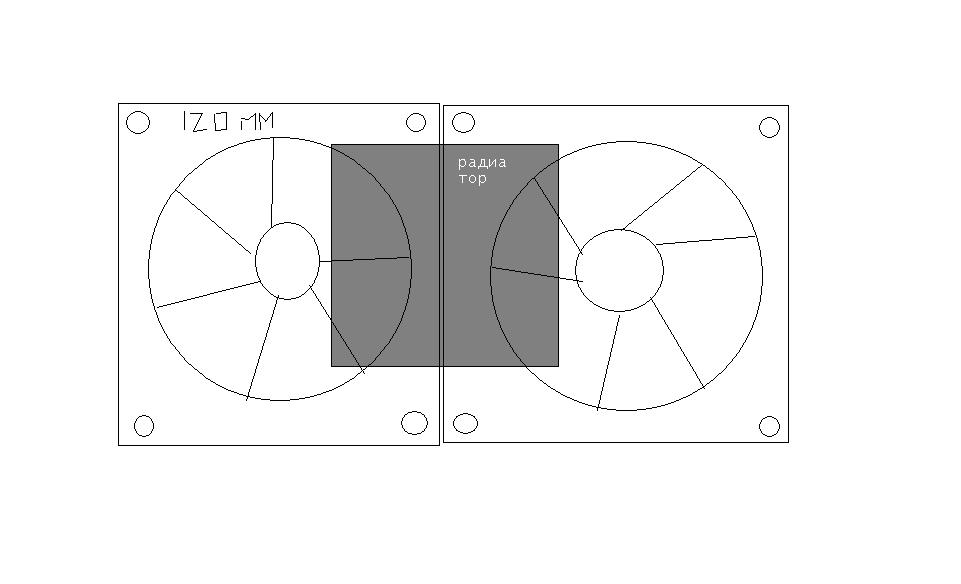 с помощью известного способа "какой-то матери" прикрутил на стандартный радиатор под 80мм кулер, 2х120мм.