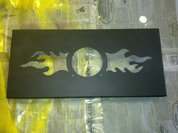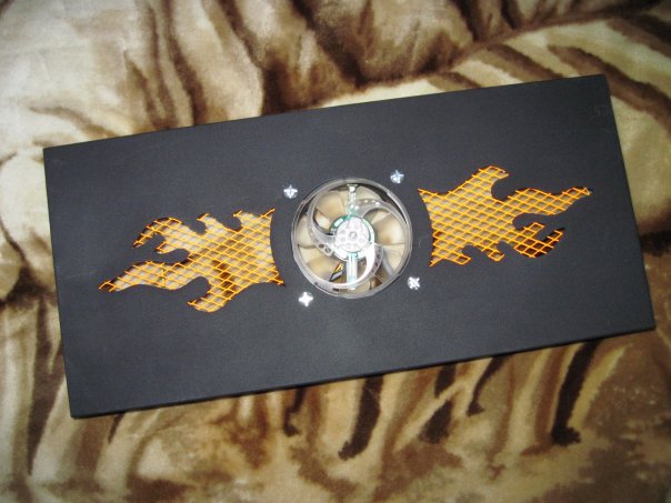 Вот пока крышка получилась такой, как на фото. Решетка выглядит не сильно яркой... но она яркая). Краска кислотно-оранжевого цвета флуоресцентная.