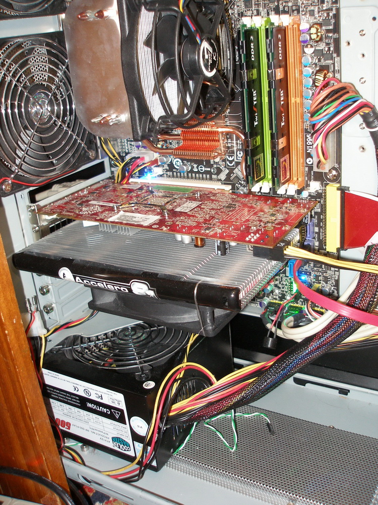 для этой карты нужен не маленький корпус она длиной наверно см 30 у меня стала в впритык к винчестерам не очень удобно,