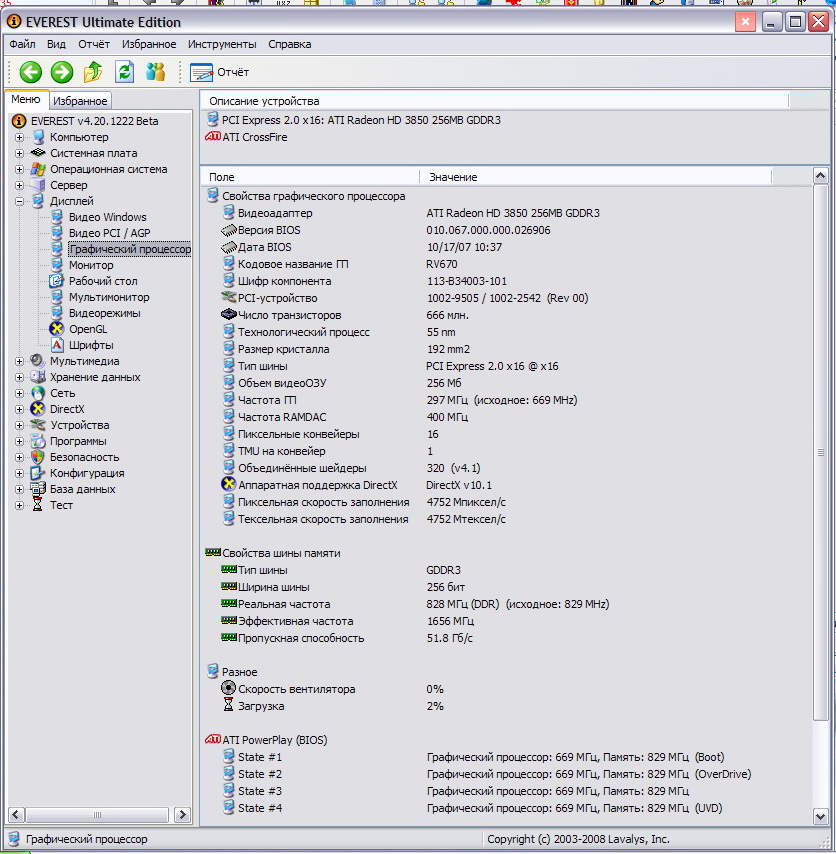 * Графический процессор: ATI Radeon HD 3850;