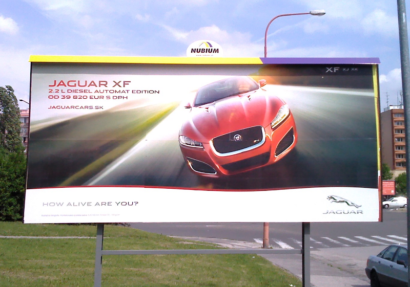 И Jaguar с бигборда настойчиво предлагает всем, стоящим на автобусной остановке дизель с автоматом всего за 40 штук.