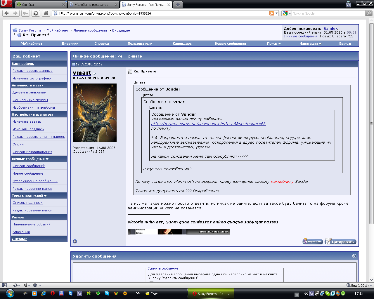 Вопрос: По какой причине не удален флуд и оскорбления со стороны Сандера и нескольких пользователей?