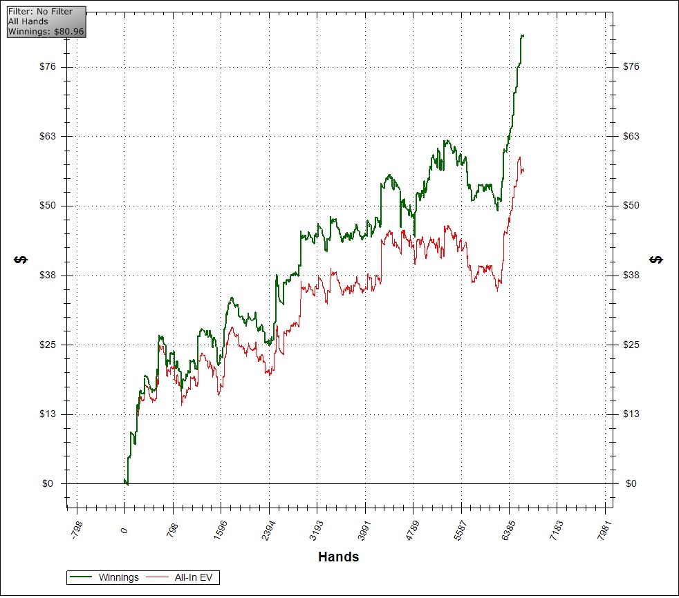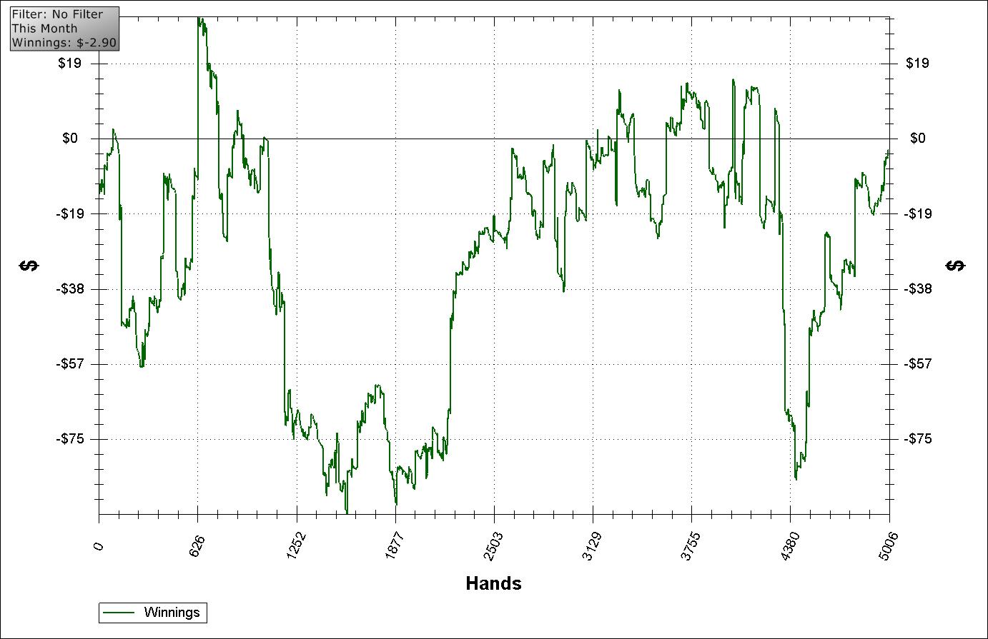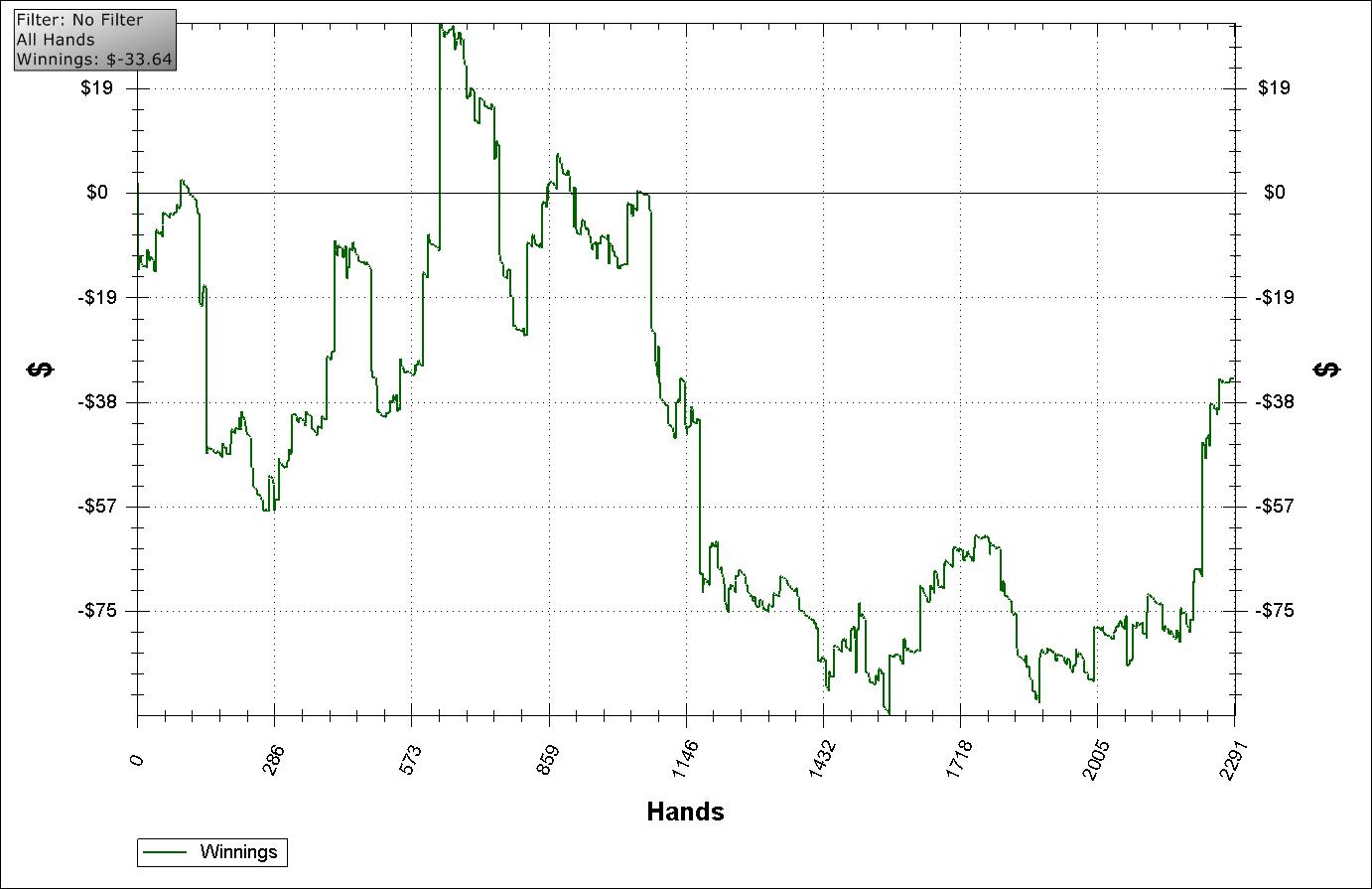 Чтото отдохнул дня 4 на праздники и теперь не могу нормально влиться в игру , очень много переездов а в придачу к ним и сам деньги раздаю, в общем очень не доволен своей игрой. Вывод: нефиг отдыхать, катать ,катать и еще раз катать. А самое обидное было гдето на 4370 руках, поубирал уже на всех столах автопост и собирался выходить, как вдуг на трех столах завязки , как результат -90 уе, называется не успел выйти :((