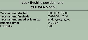 Март просто п****ц. Залил 16БИ на NL20 за первую неделю. Не скажу что играл отлично но не везло, играл как обычно средненько но убивали по серьёзному. Справляться с этим крайне сложно особенно если это надолго затягивается. Теперь планы с переходом на NL50 приходится временно растянуть на более долгий период. Впринципе по песимистическим подсчётам я должен катать НЛ20 в течении двух месяцев, посему времени наверстать упущенное ещё ой как много. В нагрузку ко всему я заболел, потому помимо отвратительного настроения ещё и отвратительное состояние. Ну правда последние несколько дней стали попроще, в основном из-за успехов в оффлайне. В пятницу ездил играть фризаут за 250 грн. в Сити, выпал на пребаббле, пошёл рубануть одну сессию в кеш и выиграл 700 грн. за 15 минут. В Сити увеличили блайнды до 2-4 грн, потому игра стала жёстко дисперсной но и более прибыльной. Раздачки конечно были космос, расскажу подробнее: