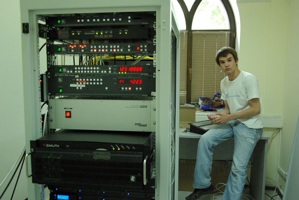 1. В обнимку с серверной стойкой 2. С видео микшером:lol: 3. Непосредственно на рабочем месте 4. В эфирной, с глупым выражением лица 6. См. 2