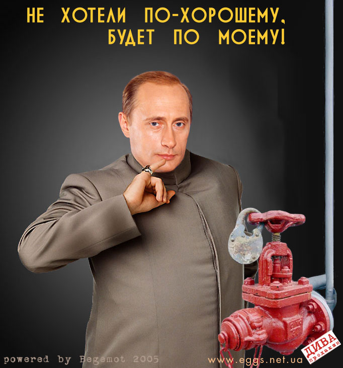 Добавлю от себя : ГазПром от потери експорта газа в Эуропу теряет 130-170 млн баксов. Сколько там они нам долгов навешали? 2 млрда? Дак они еще потеряют столько же (если не потеряли). Хреновые из них економисты, как и политики впрочемкто-то поместил здесь с российского форума пост от человека, раяботающего в газотранспортной системе России - там утверждается, что весь этот цирк готовился последние 2-3 месяца, ибо газа действительно НЕТ - в ПГХ в Росссии всего 10-17% осталось. Я не могу найти где этот пост был( мульён веток же наплодилось)