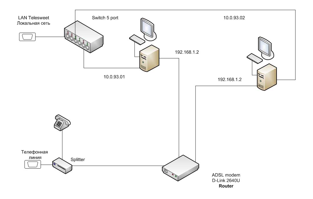 Компьютер: 2 сетевые (модем и сеть).