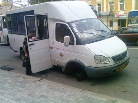 Теряться в догадках долго не пришлось. Буквально через 300 метров все сидящие «по правому борту» ощутили толчок, как от попадания колесом в глубокую яму, а через секунду увидели отлетающее на тротуар колесо. Той самой маршрутки, в которой они ехали.
