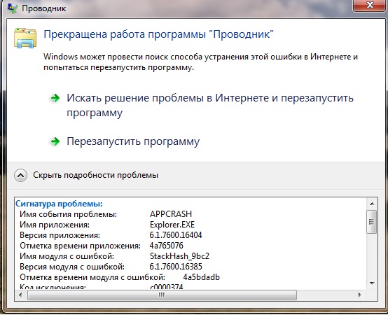 Код исключения: c0000374