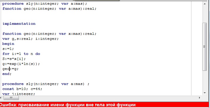да, точно лишнего написал =) но єто уже другое дело, я не нащёт работы программы, просто абс паскаль выделывается, а в виндовс 7 турбо паскаль старенький не идёт = / хз как проверить работу модуля, в общем ошибка ниже(надо было мне сразу скрин приложить)ну и не понятно зачем "var x:mas", если элементы массива не меняются.