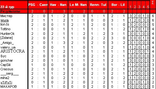 ARISTOCRAT модератор Модератор 31.01.09 #551 ПСЖ - Кан 2-1 Гавр - Нанси 1-2 Ле Ман - Нант 1-1 Ренн - Тулуза 1-0 Бордо - Лилль 1-1